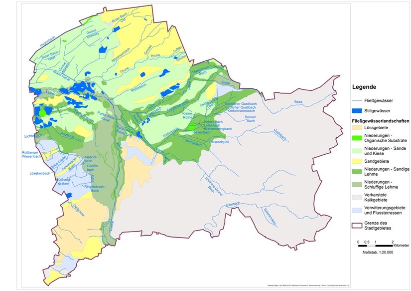 Die im Paderborner Stadtgebiet auftretenden Fließgewässerlandschaften sind in der beiliegenden Karte ersichtlich und werden im Folgenden näher erläutert.