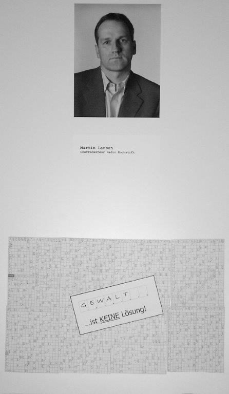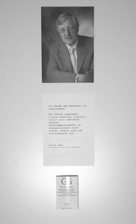 29 Prominente der Region Paderborn haben sich 2004 zusammengetan, um ihr Statement gegen Gewalt an Frauen abzugeben und somit eindeutig Profil zu zeigen. Die Statements wurden teilweise durch das Aufbringen von Gegenständen auf einer Hartfaserplatte betont und an mehreren Orten ausgestellt. Ergänzend dazu wurde eine Dokumentation erstellt.
