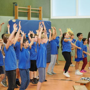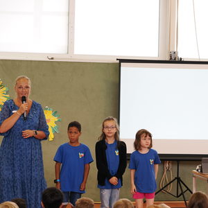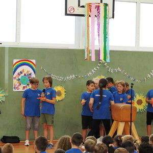Am Donnerstag, den 10.07. fand auf unserem Schulhof eine multireligiöse Abschlussfeier mit allen Kindern unserer Schule statt. Neben den beiden Vertretern der katholischen und evangelischen Kirche wurde die Feier in diesem Jahr außerdem von einem Vertreter der muslimischen Gemeinde gestaltet. Die Kinder der vierten Schuljahre hatten die Feier gemeinsam mit ihren Lehrerinnen vorbereitet und mit viel Einsatz durchgeführt. Eine gelungene Feier für einen würdevollen Abschluss des Schuljahres.