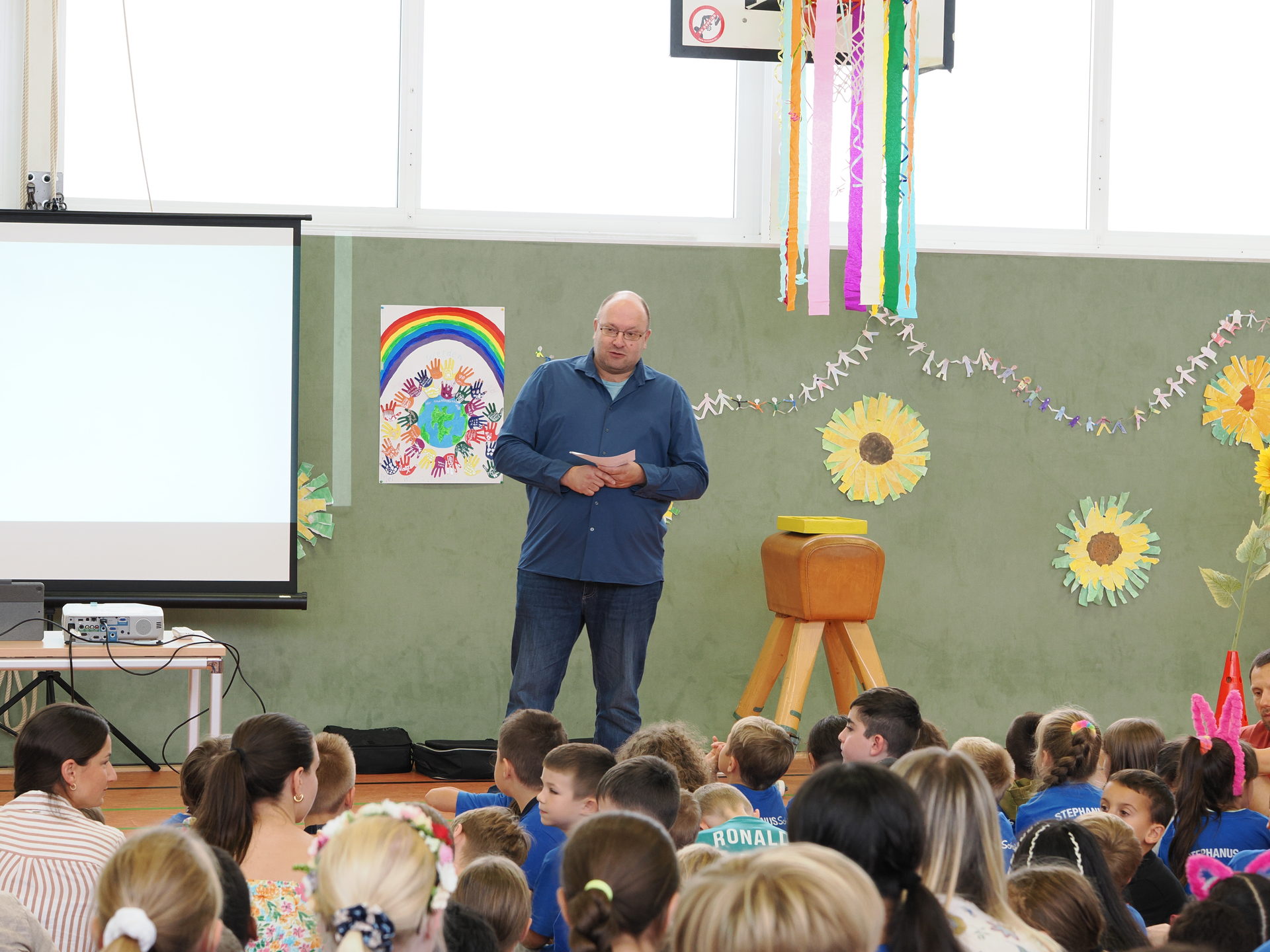 Begrüßung in der Turnhalle Informationen über die Stephanusschule |