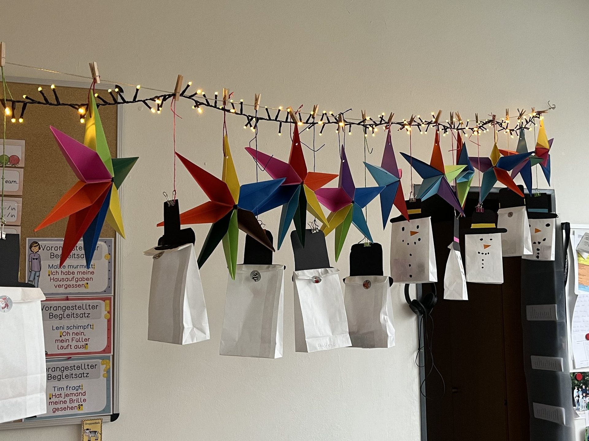 In der Weihnachtszeit verwandelt sich unsere Schule in einen ganz besonderen Ort. Überall glitzern Lichter, es duftet nach Plätzchen und fröhliche Weihnachtslieder begleiten den Schulalltag. Die Kinder basteln mit viel Begeisterung Fensterdeko oder kleine Geschenke. Auch im Unterricht wird die Adventszeit bewusst aufgegriffen: Geschichten werden vorgelesen, Bräuche aus verschiedenen Ländern kennengelernt und Momente der Ruhe geschaffen. Besonders beliebt ist natürlich der Adventskalender, der in jeder Klasse täglich geöffnet wird. Die Weihnachtszeit an unserer Schule steht für Zusammenhalt und Rücksichtnahme und schenkt ein Gefühl von Geborgenheit.