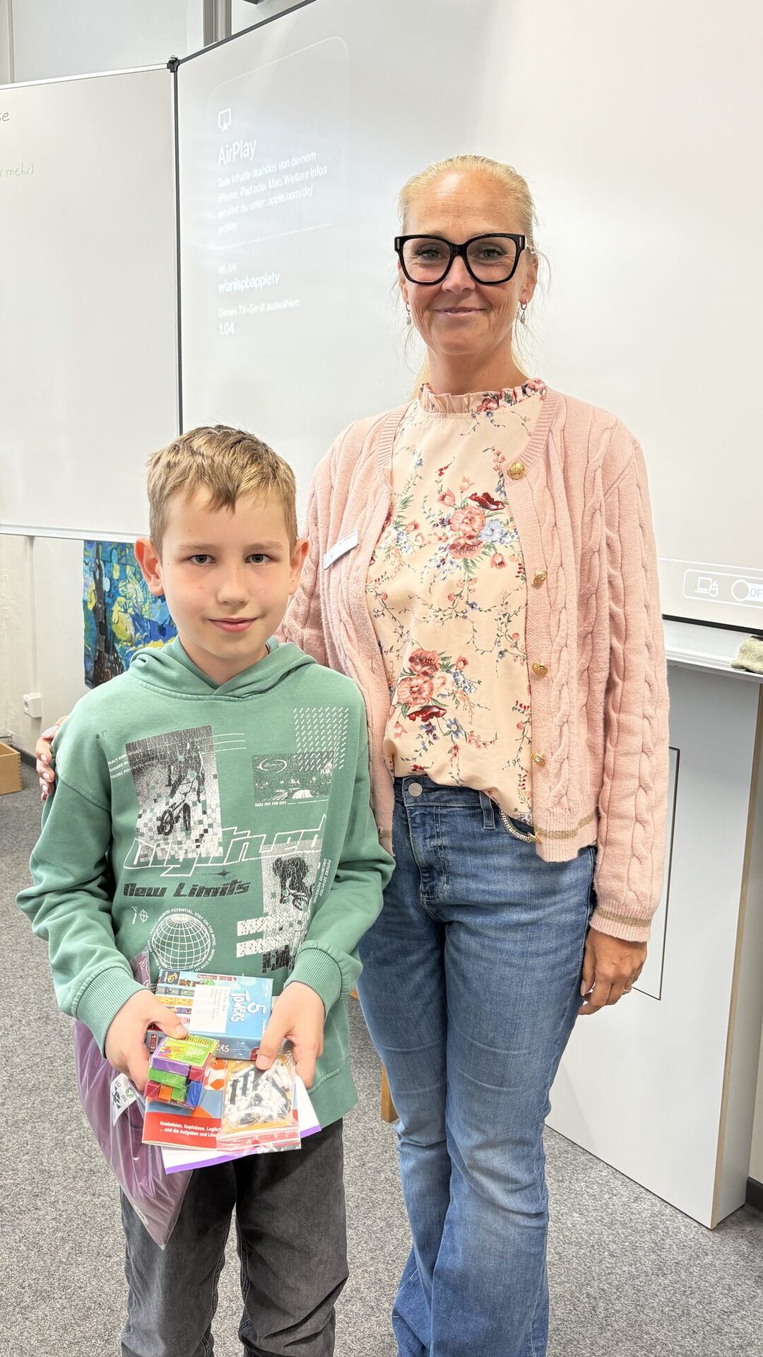 Im Rahmen einer schulinternen Ehrung würdigte die Schulleitung die besten Leistungen im vierten Schuljahr: Den 1. Platz belegte Vincent, gefolgt von Julius auf dem 2. Platz und Isabella auf dem 3. Platz.