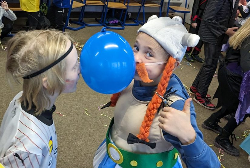 Am 08.02.24, an Weiberfastnacht, fand die diesjährige Karnevalsfeier an der Comeniusschule statt. Die Kinder der dritten Klassen bereiteten sich schon im Vorfeld voller Vorfreude auf diesen Tag vor. Sie schmückten Ihre Klassen mit selbst gebastelten Girlanden und Fensterbildern. Einige brachten sogar extra Dekorationen von zuhause mit und verwandelten die Klassenräume dadurch in wahre Karnevals-Festräume. Außerdem planten die Kinder gemeinsam den anstehenden Tag und überlegten sich zusammen mit ihren Eltern tolle Kostüme.