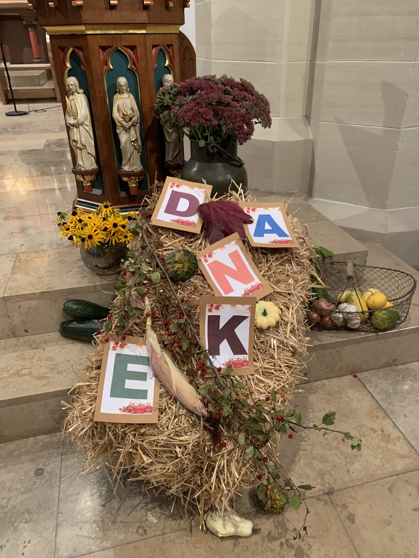 Im Erntedankgottesdienst am letzten Tag vor den Herbstferien versammelte sich unsere Schulgemeinschaft in der prachtvoll geschmückten Kirche.