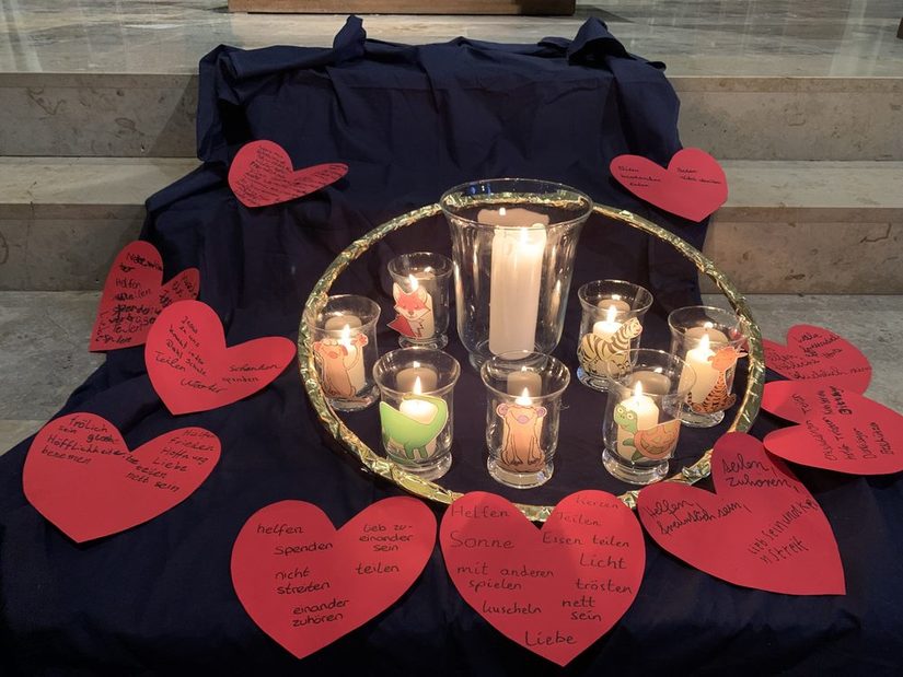 Die Kinder gestalteten den Gottesdienst mit Liedern, Gebeten und kleinen Anspielen. Dabei wurde gezeigt, dass das Wertvollste im Leben nicht gekauft werden kann: Liebe, Freundschaft, Zeit füreinander und ein gutes Miteinander.