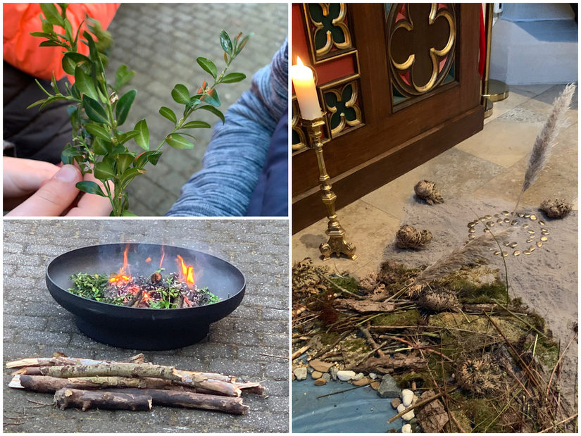 Die Kinder konnten sich auf diese Weise besonders bildlich vorstellen, wie die Asche für das Kreuzzeichen entsteht. Dieses durfte sich jeder im späteren Verlauf des Schulgottesdienstes in der Kirche abholen.