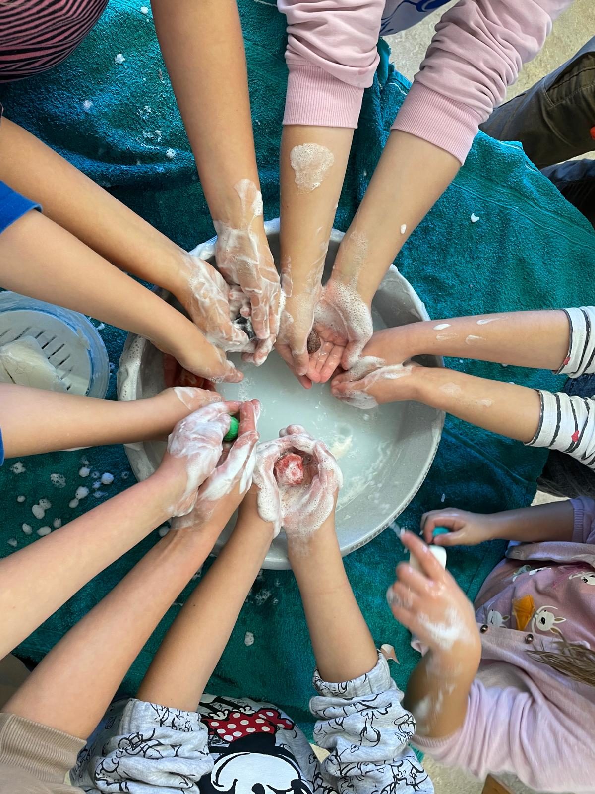 Durch das gemeinsame Mitttagessen werden soziale Kompetenzen wie Teilen und Rücksichtnahme gefördert. Die Kinder lernen Tischkultur und eine Wertschätzung der Lebensmittel.