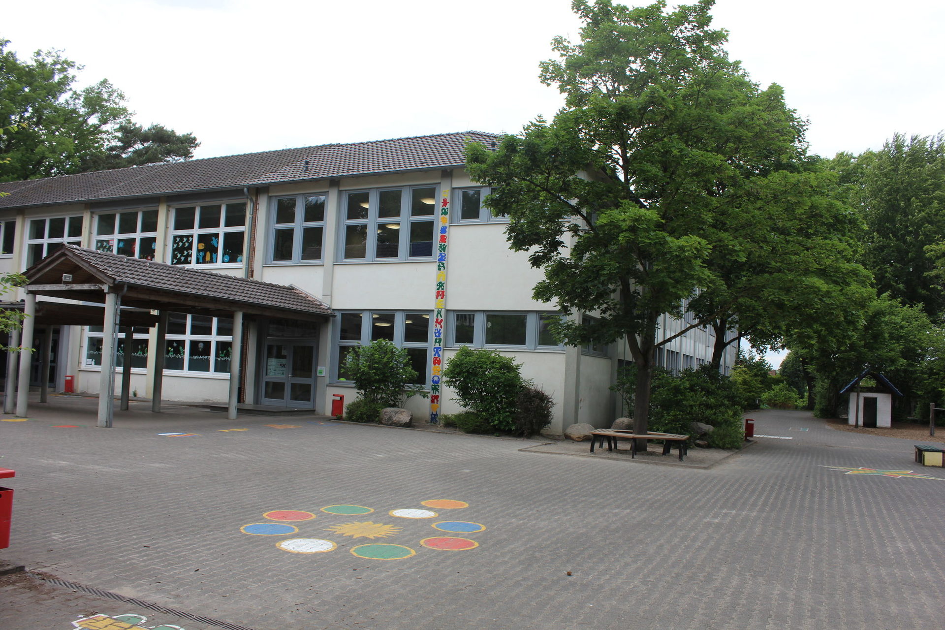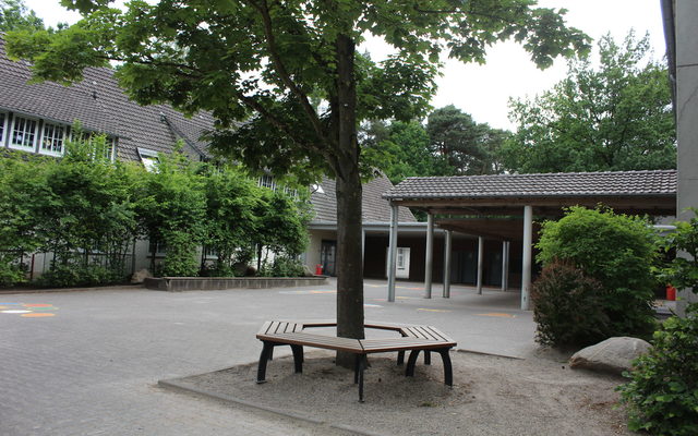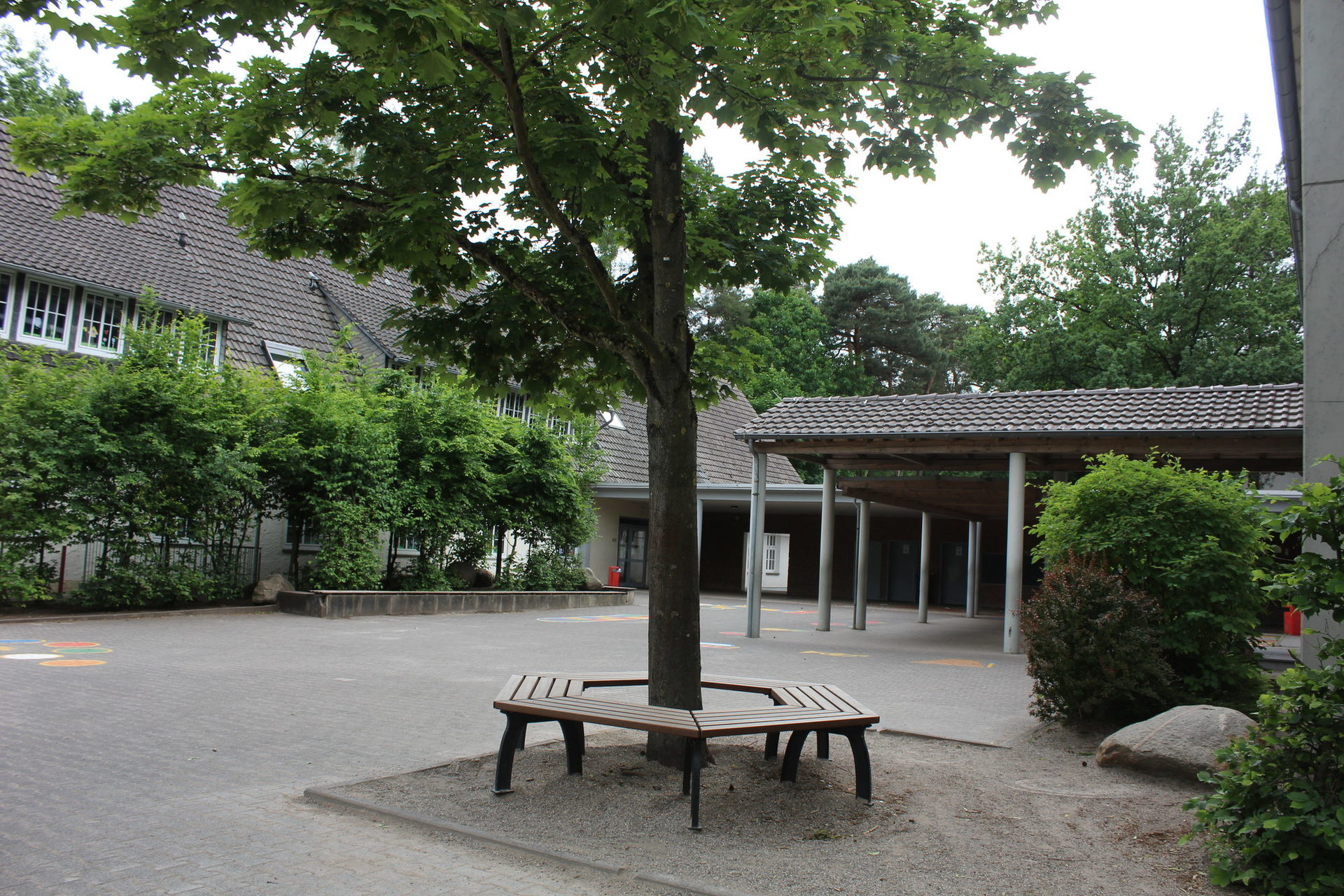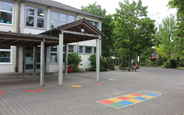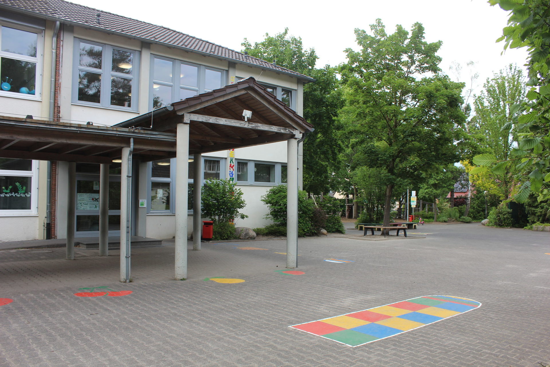 Der weitläufige, zum Teil asphaltierte, zum Teil naturbelassene Schulhof bietet allen Kindern ein reichhaltiges Bewegungsangebot.