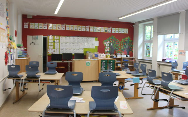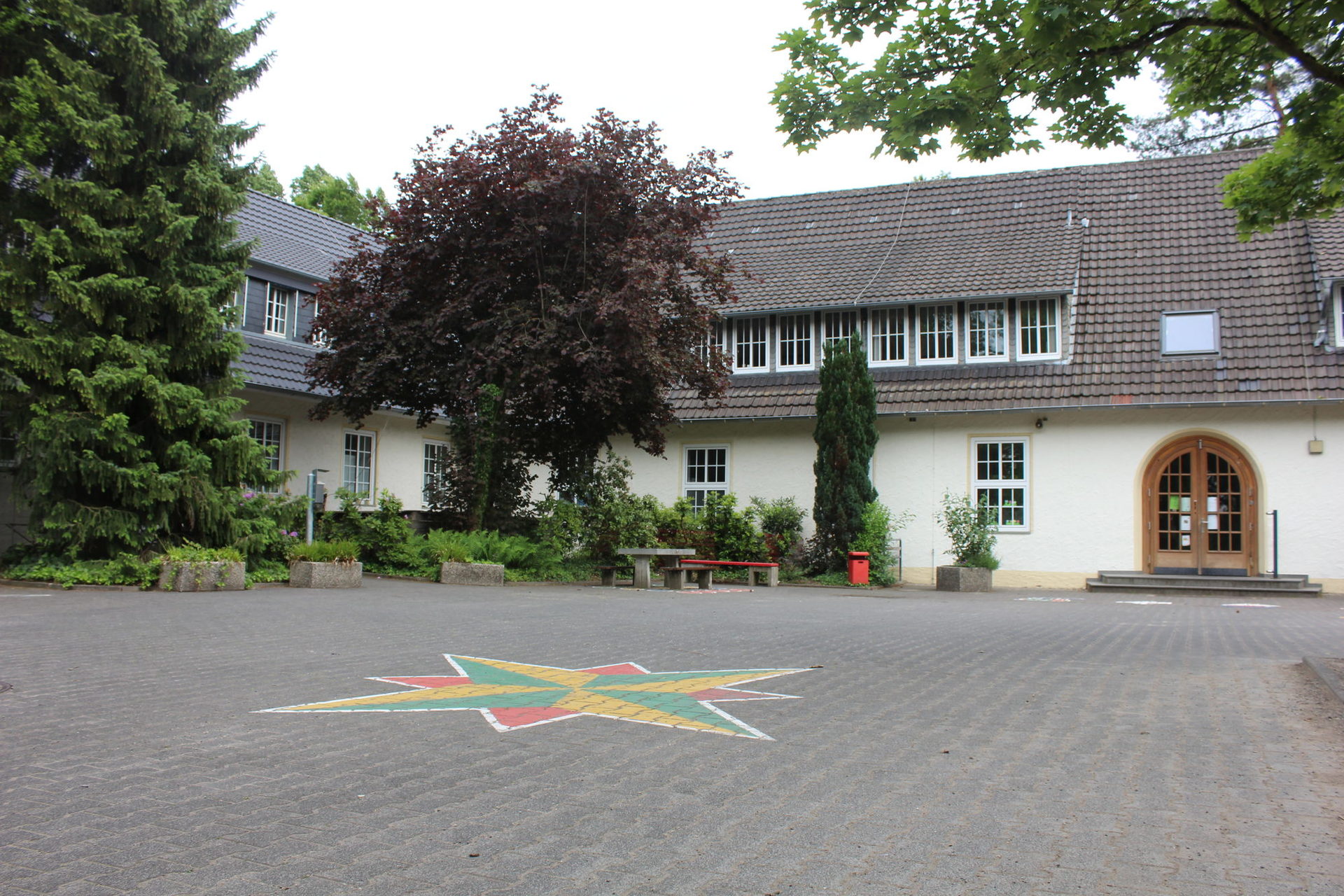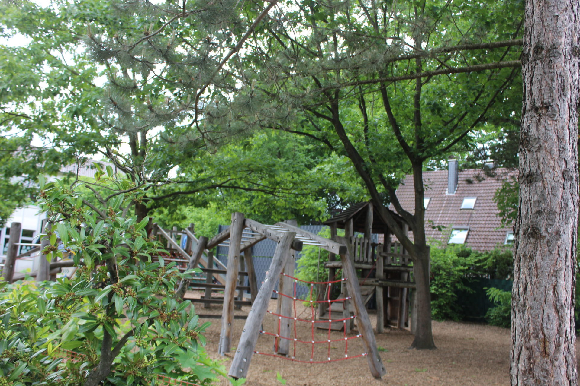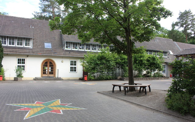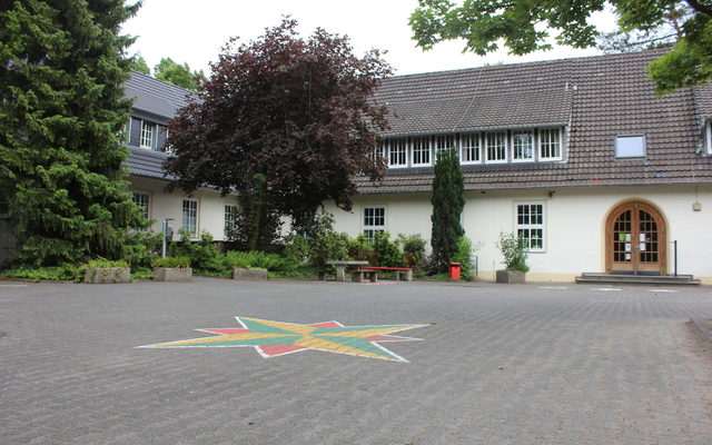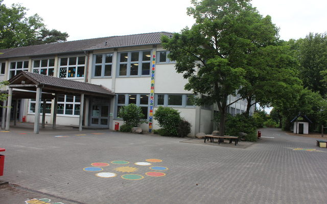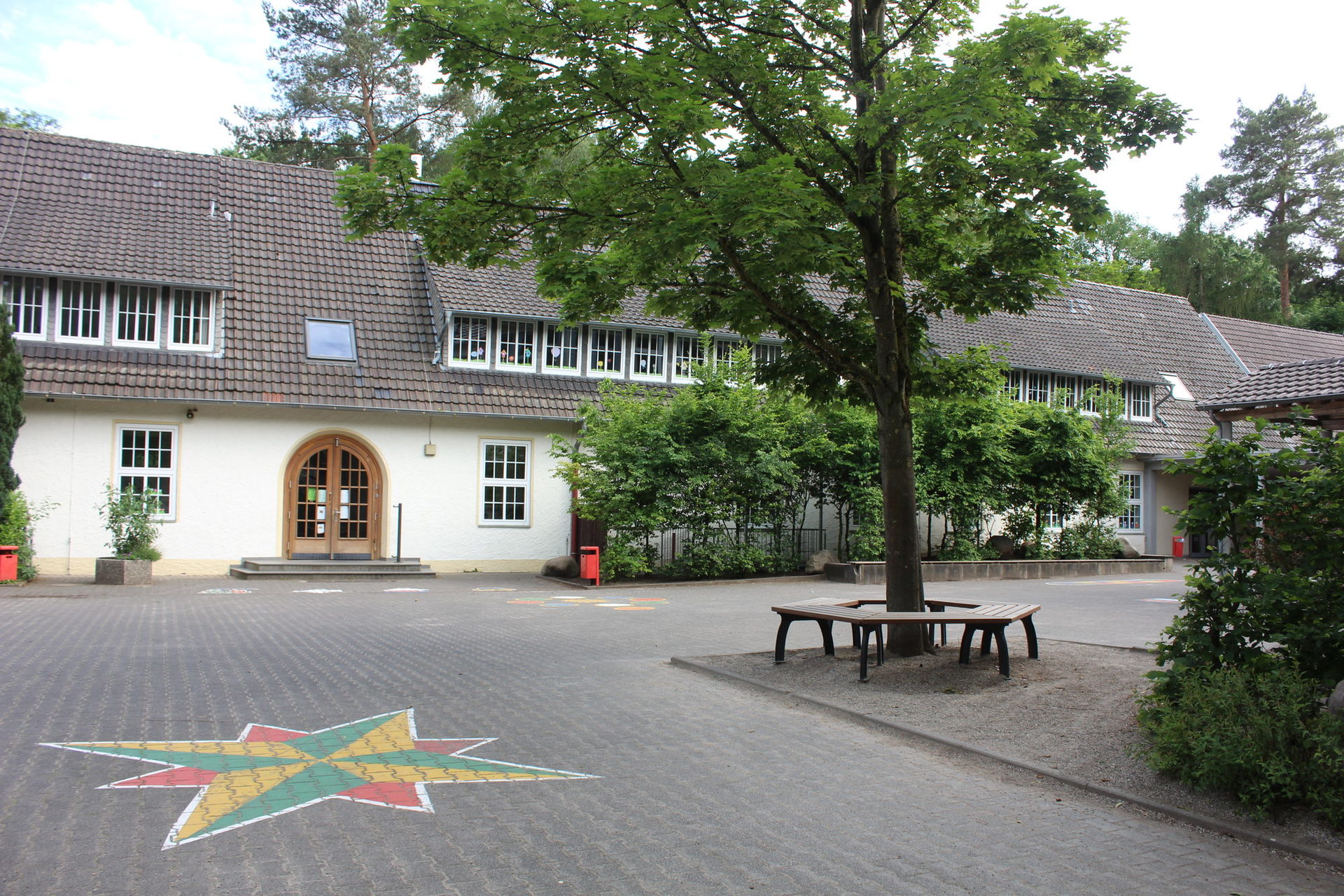 Der weitläufige, zum Teil asphaltierte, zum Teil naturbelassene Schulhof bietet allen Kindern ein reichhaltiges Bewegungsangebot.