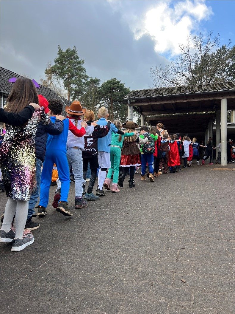 Alle Schüler und Lehrer trugen viele bunte und kreative Kostüme, die den Tag noch farbenfroher und lebendiger machten. Zum Abschluss des Tages versammelten sich alle auf dem Schulhof für eine große Polonaise. Trotz des kalten Wetters sorgte die Sonne für einen angenehmen Abschluss dieses besonderen Tages. Der Karneval an der Grundschule Josef war eine wunderbare Gelegenheit, Gemeinschaft zu erleben und unvergessliche Erinnerungen zu schaffen.