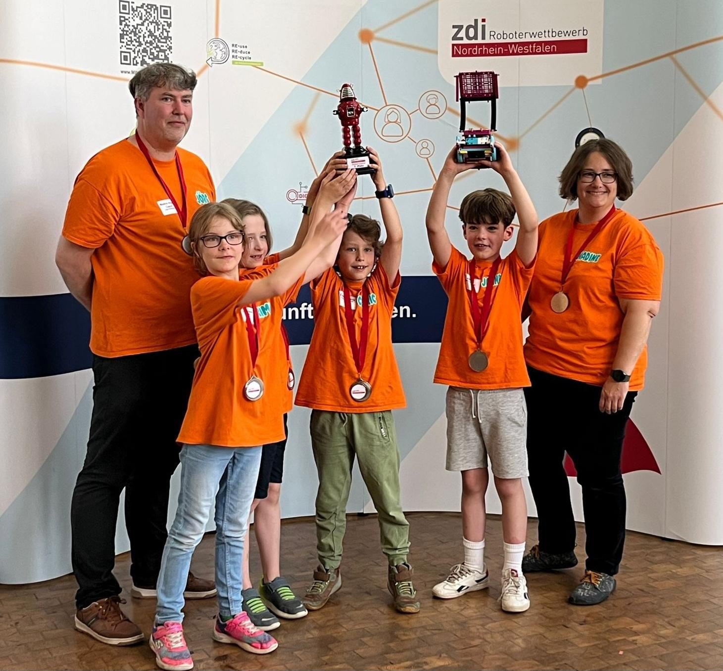 Beim zdi-Regionalwettbewerb am 13.06.25 haben die Lego Droidenkids mit vier Schülerinnen und Schülern der Grundschule Josef in der Altersklasse Grundschule den 1. Platz erreicht! Mit kreativen Ideen, Engagement und Teamgeist sicherten sich Kimberly (4c), Cedric (3a), Robin (3a) und Jannes (3a) den Sieg und damit die Qualifikation für das große NRW-Finale in Mühlheim an der Ruhr am 28.06.25.