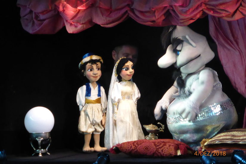 Am 05.12.2018 waren wir bei uns in der Turnhalle und haben mit anderen Klassen ein Puppentheater angeschaut. Das Märchen erzählte von einem Jungen, der arm war. Er hat sich in die Königstochter verliebt und ein Zauberer hat ihm gesagt, dass er sein Onkel sei. Aladin sollte eine Wunderlampe aus einer Höhle holen. Er hat sich auch getraut, doch das Seil riss. Aladin wollte die Lampe putzen, da kam ein dicker Geist. Am Schluss hat Aladin seine Frau bekommen und sie waren nicht mehr arm.