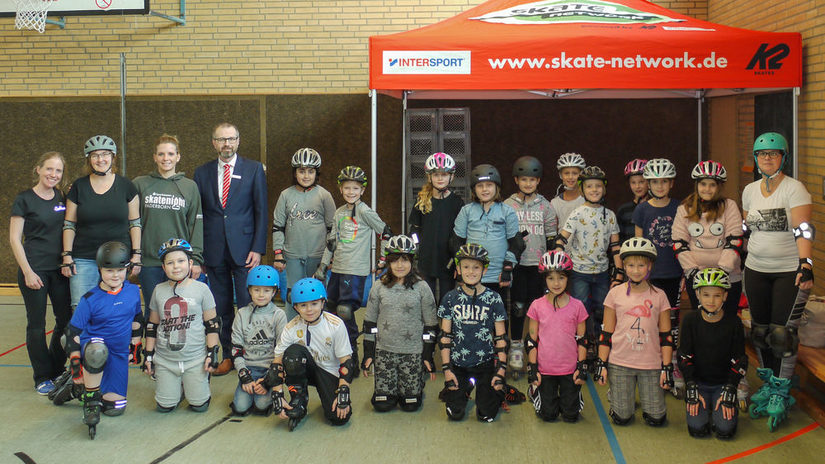 Im Herbst nahmen die Klassen 4a und 4b an einem Skateprojekt teil. Die Sparkasse Paderborn und unser Förderverein haben das Projekt unterstützt, so dass alle Kinder in der Schule das Inlinerfahren lernen konnten. Es hat uns sehr viel Spaß gemacht. Ein ganz besonderes Dankeschön gilt neben unseren Sponsoren auch Frau Robrecht, Bens Mutter, die diese tolle Idee hatte und mitgeholfen hat, alles zu organisieren.
