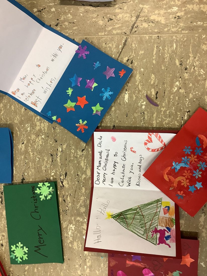 In diesem Jahr haben die SchülerInnen der vierten Klassen ihre Weihnachtskarten für die Eltern in englischer Sprache verfasst!