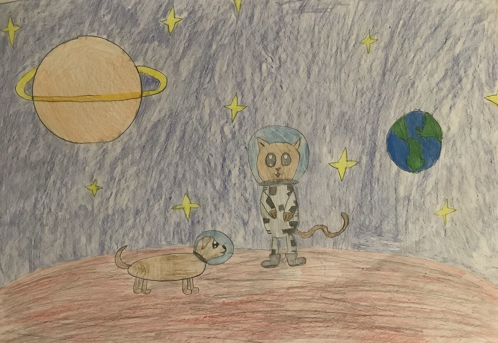 Eines Tages in einem kleinen Haus mitten im Dorf hatte der Kater Findus einen großen Wunsch. Er wollte ins All fliegen. Alle Leute im Dorf fanden diesen Wunsch absurd. Sie haben Findus gesagt, dass er es vergessen soll. Menschen und Tiere im All gab es noch nie. Aber Findus hörte nicht auf die anderen. „Trotzdem bleibt es mein Traum“ sagte Findus. Er beschloss, ein riesiges Raumschiff zu bauen, das so groß wie eine Stadt ist. Tag für Tag baute er an dem Raumschiff. Nach zwei Monaten war die Rakete endlich fertig. Am nächsten Morgen wollte Findus ins Weltall fliegen. Als er den Weltraumanzug angezogen hatte, betrat er das Raumschiff. „Fünf, vier, drei, zwei, eins, null, fertig machen zum Starten!“ rief Findus. Schon war die Rakete in der Luft. Findus überlegte, wo er als erstes hinreisen wollte, „Mmm“ murmelte er. „Ich glaube, ich möchte zum Mars fliegen.“ deutete er nun an. Er schaltete den Turbo ein und ehe er sich versah, war er auf dem Mars. Schließlich sprang er vom Raumschiff runter und erkundete die Gegend. Aber auf einmal hörte er ein Geräusch. Es hörte sich an wie „wau wau“. Was könnte das nur sein? Ein Monster oder ein Außerirdischer? Auf einmal spürte Findus, wie er von hinten angetippt wird. Er wurde starr vor Angst und er spürte wie Schweißperlen auf seiner Stirn auftauchten. Er nahm seinen ganzen Mut zusammen und drehte sich um. Ein kleines Hündchen stand nun vor ihm. „Oh wie süß!“ sagte Findus. Er beschloss das Hündchen mit zu nehmen. Sie erkundeten noch die anderen Planeten wie Saturn, Jupiter oder Venus. Als sie alle Planeten erkundet haben, beschlossen sie wieder zurück zur Erde zu fliegen. Sie stiegen in das riesige Raumschiff und hoben ab. Findus schaltete auch hier den Turbo an. „Klick“ sagte er, als er den Knopf drückte. Der Turbo ist super schnell, also waren sie in einer Sekunde wieder auf der Erde. Als die Bewohner des Dorfes Findus und den Hund sahen, konnten sie ihren Augen nicht glauben. Seitdem wurde Findus respektiert und war ein echter Weltraumheld.