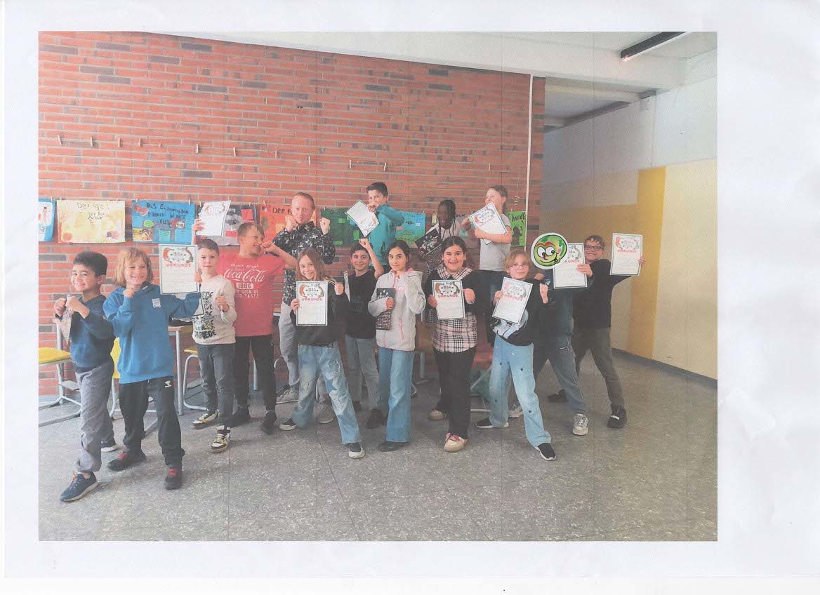 Mit viel Engagement und Begeisterung erlernten die Schülerinnen und Schüler wichtige Techniken zur Selbstbehauptung und Selbstverteidigung. Den krönenden Abschluss bildete eine Prüfung am Freitag, den 9. Mai 2025. Dafür erhielten alle Kinder eine Urkunde für ihre erfolgreiche Teilnahme. Der Kurs wurde von Herrn Becker, dem Inhaber von „Cleverklausur“, geleitet und war für die Kinder eine wertvolle und stärkende Erfahrung.