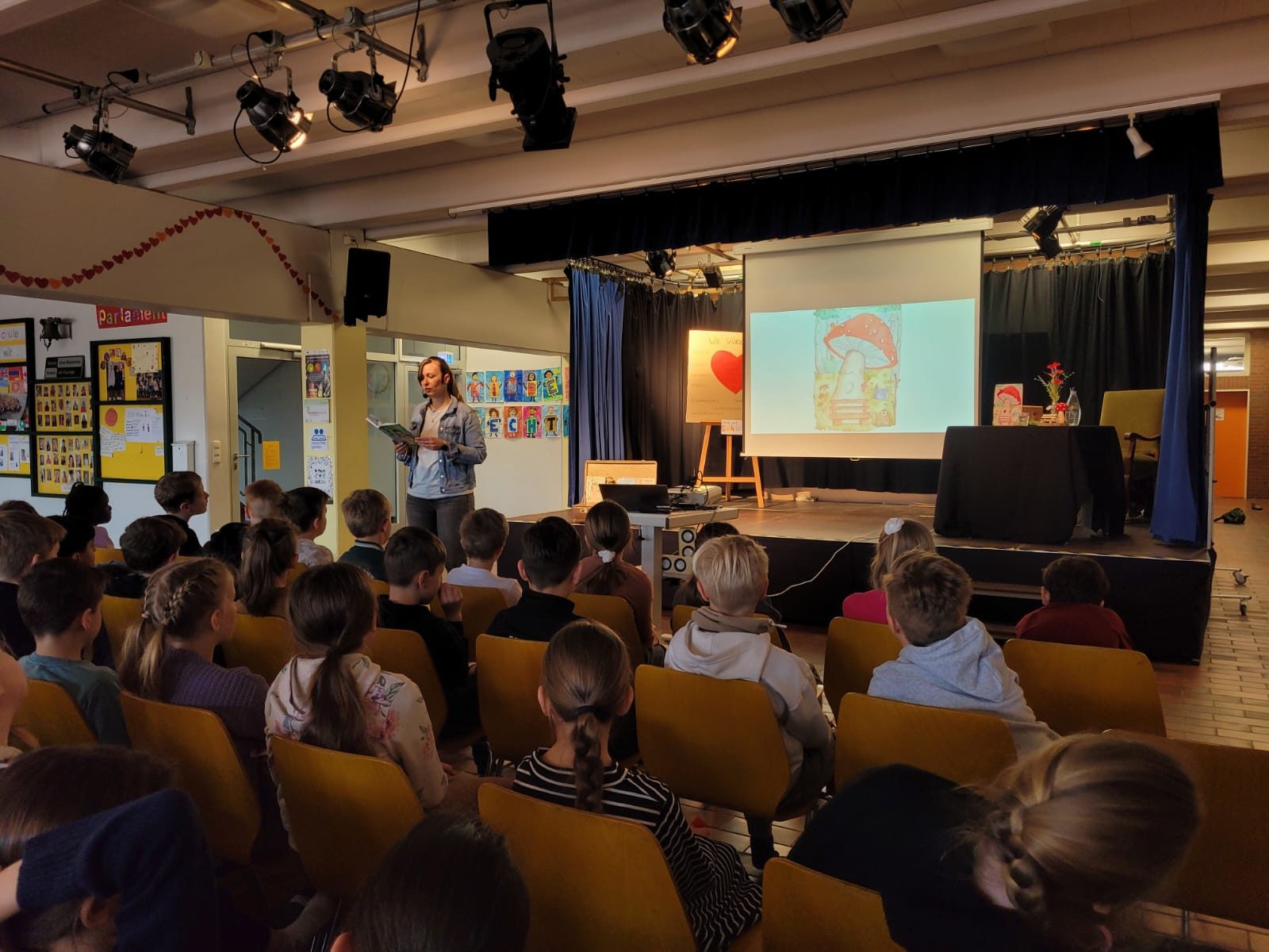 Am 4.4.25 begrüßten wir die Kinderbuchautorin Claudia Höwing (Öffnet in einem neuen Tab) bei uns an der Grundschule. Im Rahmen der Paderborner Kinderbuchwoche las sie den Dritt- und Viertklässlern aus ihrem Buch "Wichtel Sverre" vor. Dabei erhielten die Kinder Einblicke in das Leben des Wichtels und konnten sich u.a. auch eine nachgebastelte Wichtelstube anschauen. Frau Höwing erzählte, wie sie zum Schreiben ihrer Bücher kam und wie sie die Ideen für ihre Bücher umsetzt. Am Ende durften die Kinder viele Fragen stellen und bekamen als Geschenk eine persönlich signierte Autogrammkarte sowie Bücher für die Klassenbücherei. Wir bedanken uns nochmals ganz herzlich für die tolle Autorenlesung!
