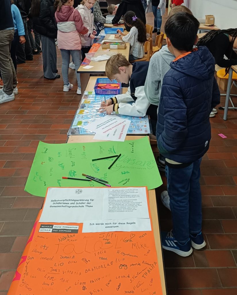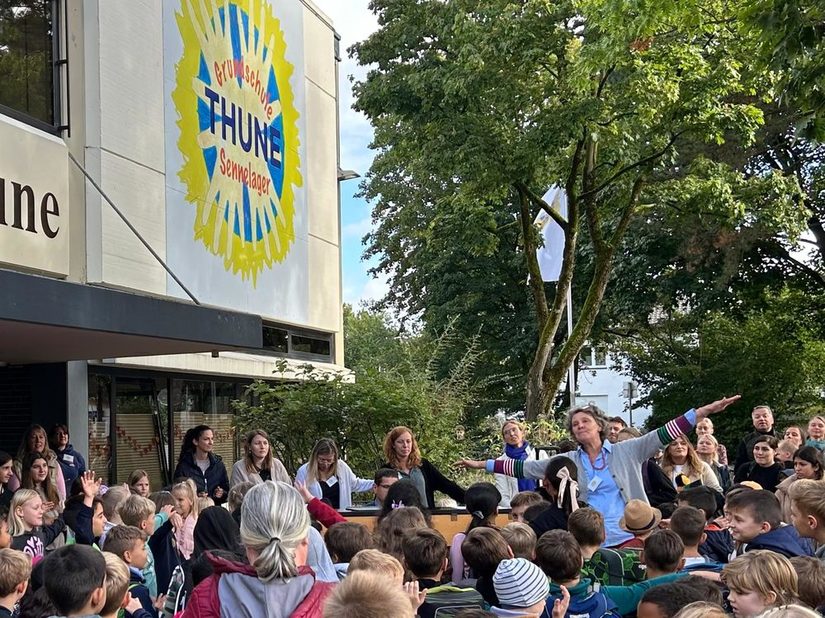Am diesjährigen "Tag der offenen Tür" konnten unsere zukünftigen Erstklässler/innen, aber auch Eltern, Freunde, Verwandte, ehemalige Schüler/innen und selbstverständlich alle Interessierten, Einblicke in den Unterricht sowie das schulische Konzepte wie z.B. die bewegte Schule oder das Konzept "Gewaltfrei Lernen" erhalten. Verpflegung gab es durch das Elterncafé der Schulpflegschaft, welches zu Gunsten des Fördervereins der Grundschule statt fand. Eine warme Kürbissuppe mit Kürbissen aus eigenem Anbau konnte bei einem Rundgang im Schulgarten verzehrt werden. Für Spiel und Spaß sorgten außerdem das multikulturelle Spielfest unter der Leitung von Frau Nalwaya sowie die Paderborner Baskets, kleine Basketballspiele auf dem Schulhof ermöglichten. Zum Schluss gab es einen gemeinsamen musikalischen Ausklang auf dem Schulhof.