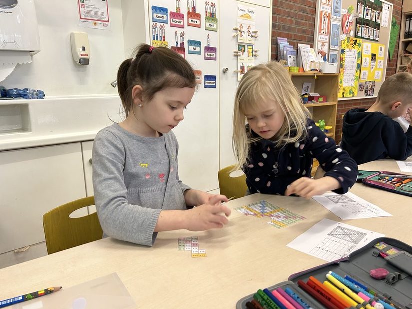 Wir machen im Matheunterricht Entdeckungen an der 1+1-Tafel.