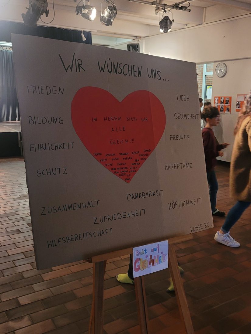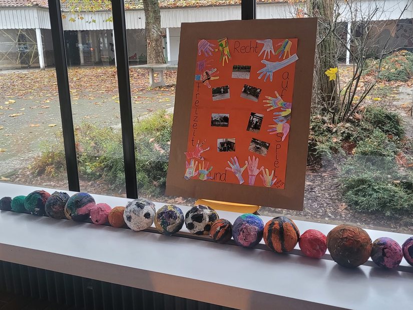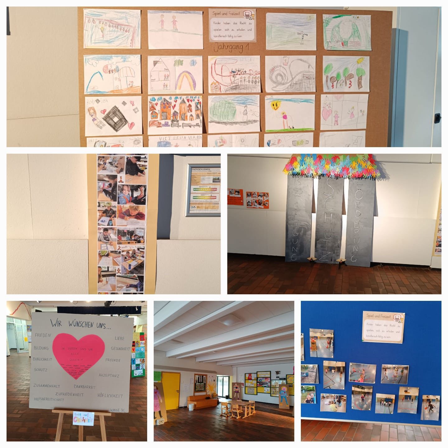 Im Rahmen eines Kunst- und Kulturprojektes haben alle Klassen künstlerische Werke zu den 10 Kinderrechten gestaltet. In Jahrgang 4 besuchte uns die Künstlerin Mira Falke, die mit den Kindern Symbole auf einer Leinwand zu den Kinderrechten erstellte. In allen Jahrgängen sind beeindruckende Kunstwerke entstanden. Am 15.11.24 eröffneten die vierten Klassen gemeinsam mit Frau Oeynhausen und Frau Frey die Kunstaustellung.