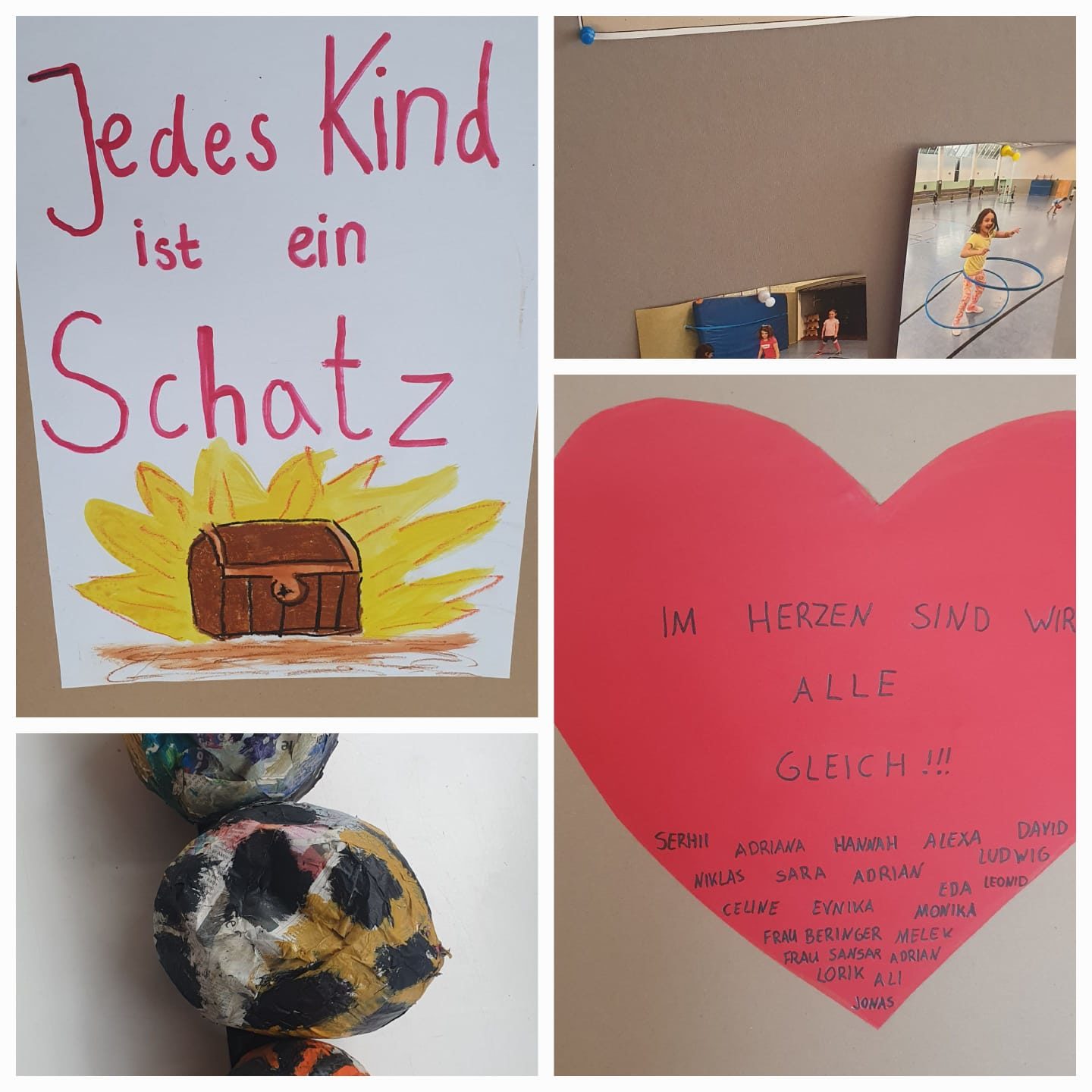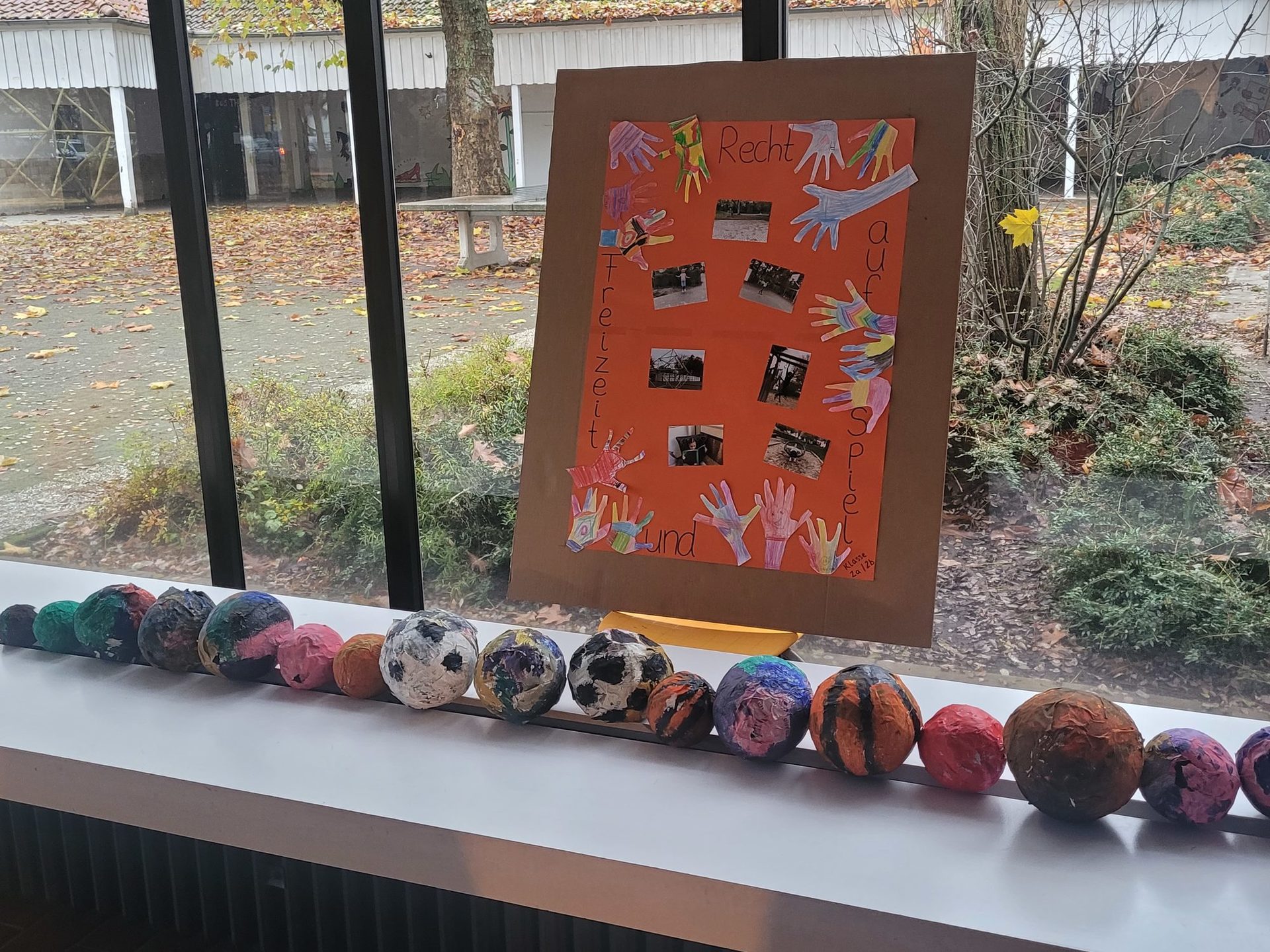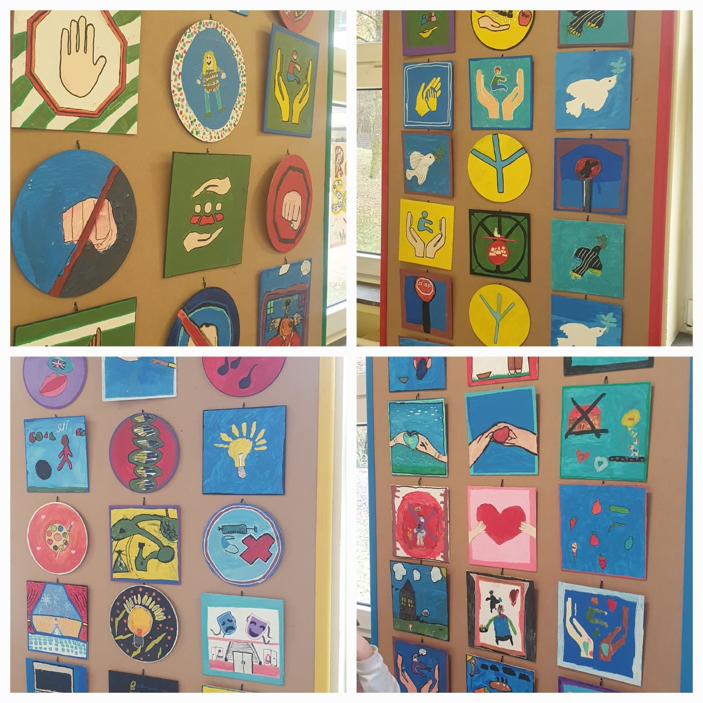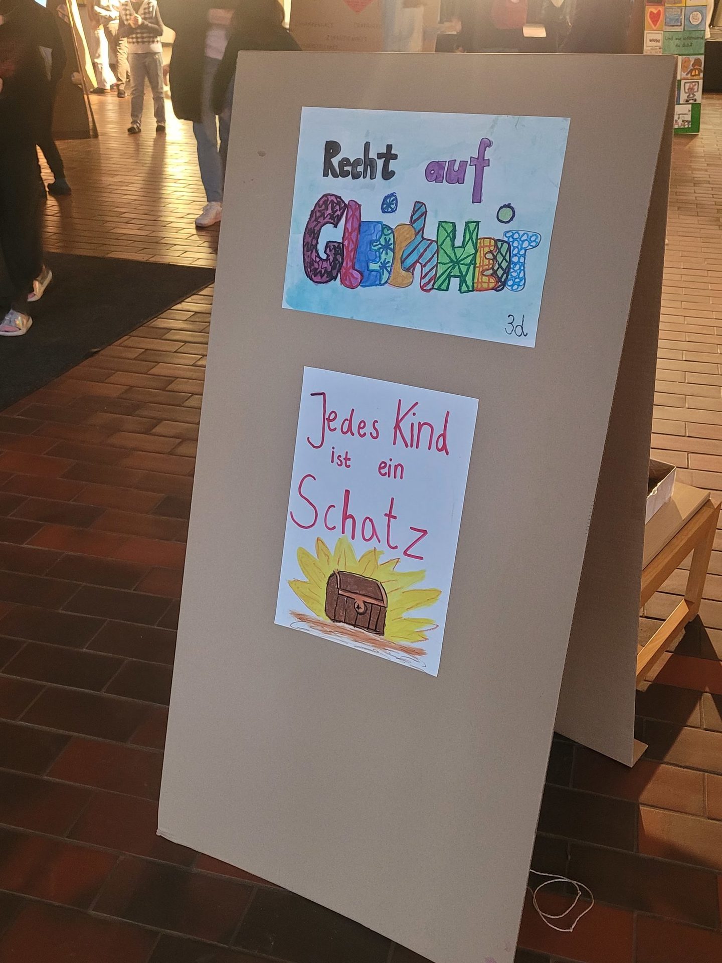 Als Schule ohne Rassismus - Schule mit Courage haben wir eine Kunstaustellung zu den 10 Kinderrechten gestaltet.