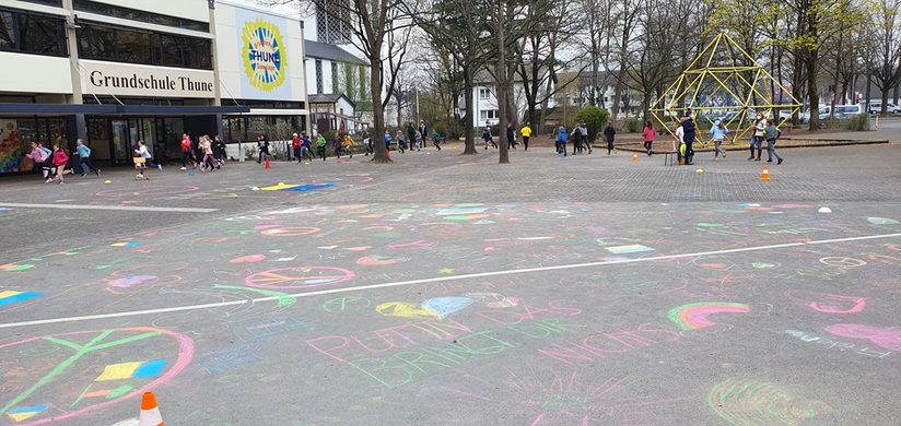 Jedes Kind suchte sich im Vorfeld Sponsoren aus dem Familien- und Bekanntenkreis, die auf dem SponsorenpassPDF-Datei128,65 kB eingetragen wurden. Am 31.03.22 liefen dann alle Kinder 10 Minuten eine abgesteckte Runde auf dem Schulhof. Das gespendete Geld kommt den Flüchtlingen vor Ort zu Gute, einen weiteren Teil spenden wir an eine Hilfsaktion für ukrainische Flüchtlinge.