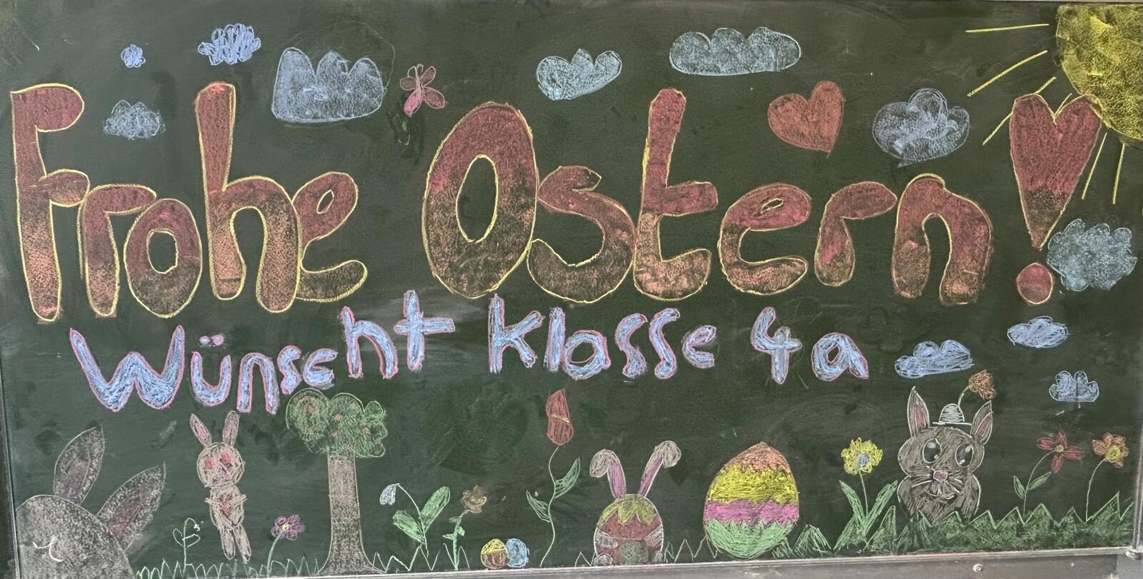 die Klasse 4a wünscht Ihnen mit ihrem Ostergrußbild frohe und bunte Feiertage.
