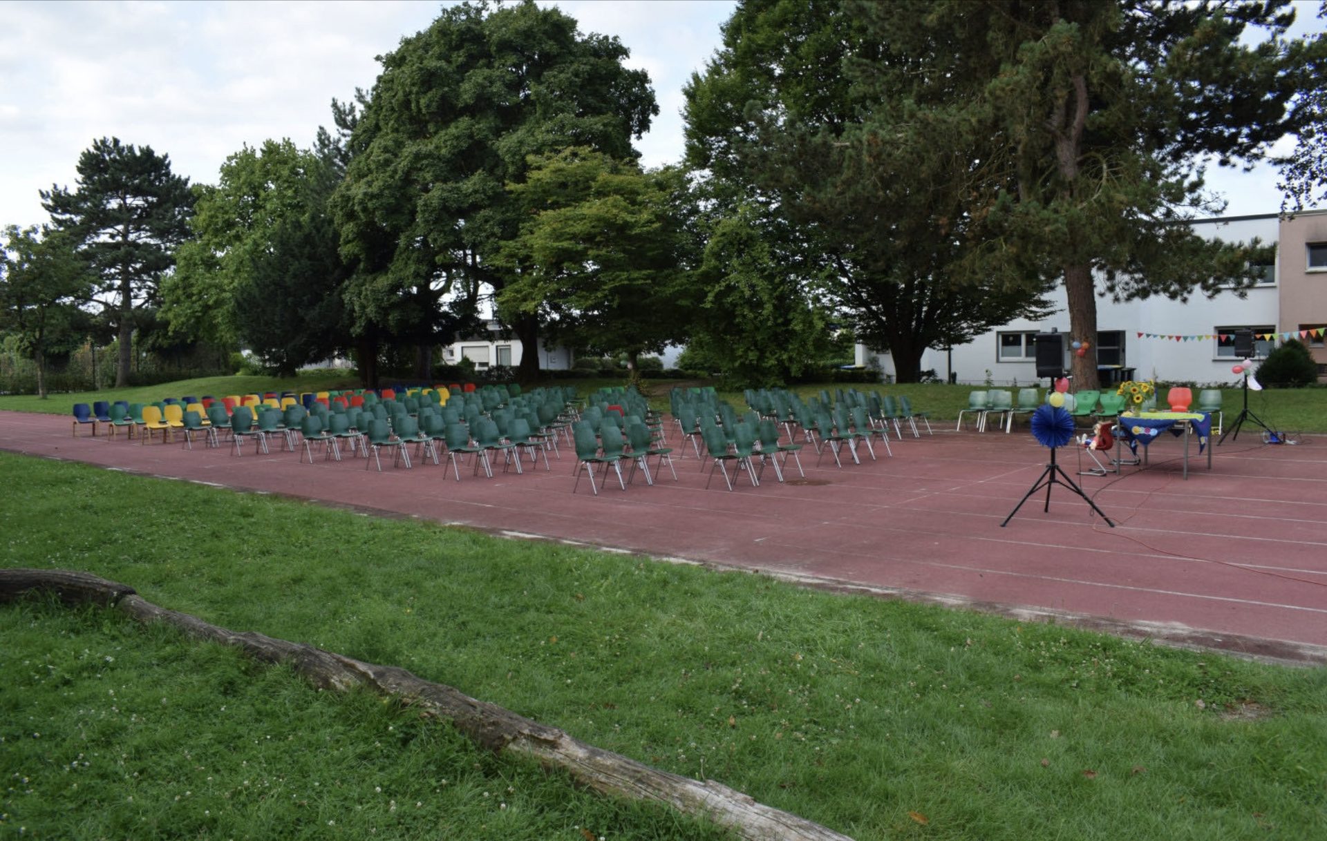 Schon als alle ankamen, sah alles richtig schön aus. Der Schulhof war bunt geschmückt mit Luftballons und Girlanden, die im Wind wehten. Das Wetter war perfekt: Die Sonne schien, es war angenehm warm, und ab und zu ging eine leichte Brise durch die Luft.