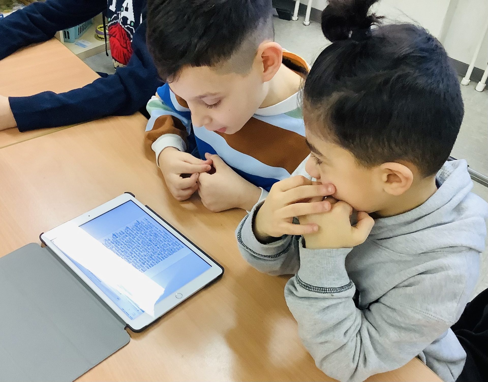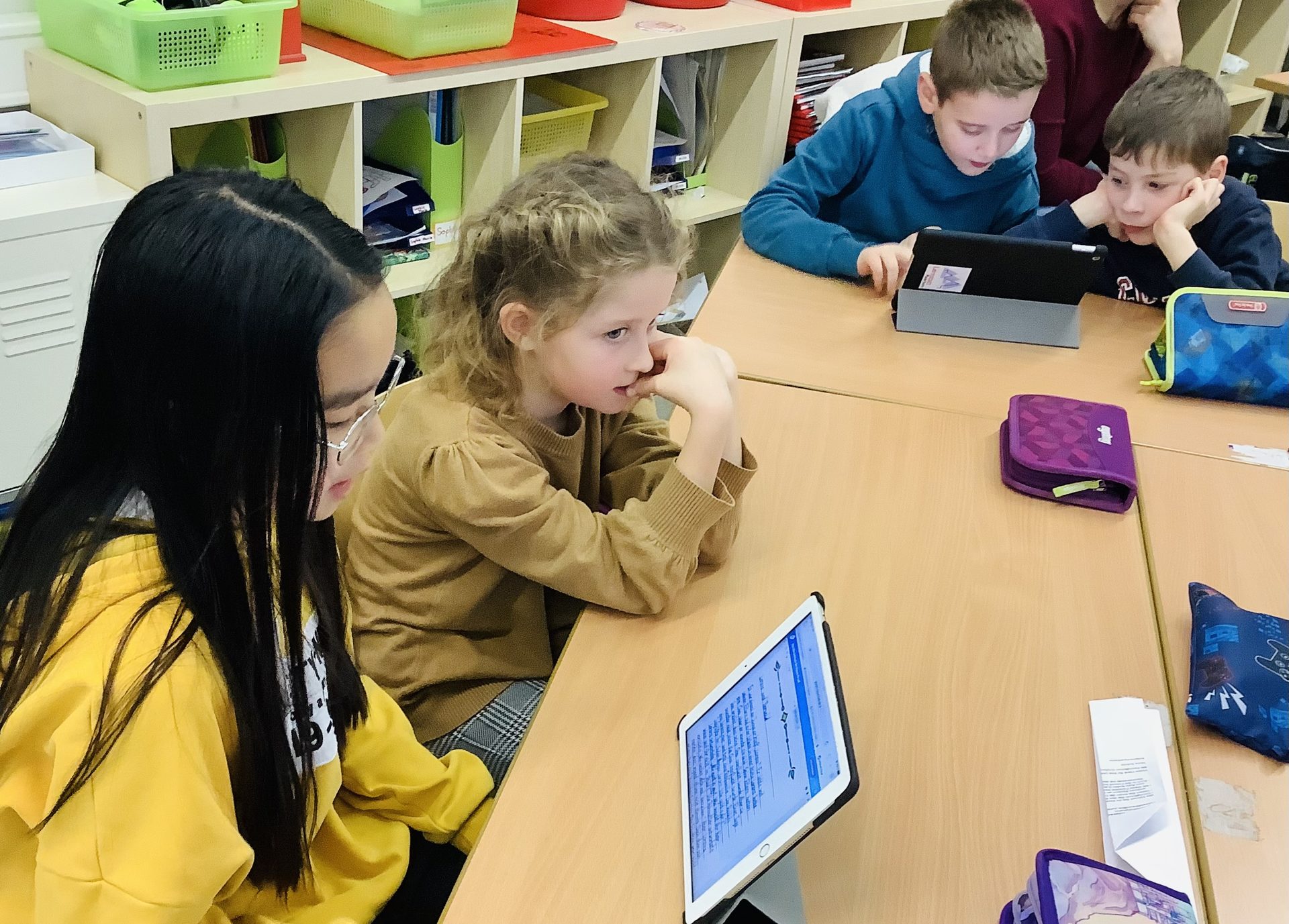 Die Kinder der Klasse 4a hatten sich zunächst mit Märchenmerkmalen auseinandergesetzt, bevor sie selbst eigene Texte verfassten und ein Märchenbuch zusammenstellten. Es entstanden spannende Märchen über wütende Drachen, schöne und schlaue Prinzessinnen, starke Könige, böse Hexen und sprechende Tiere. Anschließend wurden die Märchen digitalisiert. Die Kinder lernten ihr digitales Märchenbuch mithilfe eines QR Codes und der Schultablets zu öffnen und übten ihre Märchen möglichst schön vorzulesen. In einer abschließenden Stunde lasen sie dann ihren Patenkindern aus der Klasse 2a stolz ihre Märchen vor und ernteten viel Lob dafür.