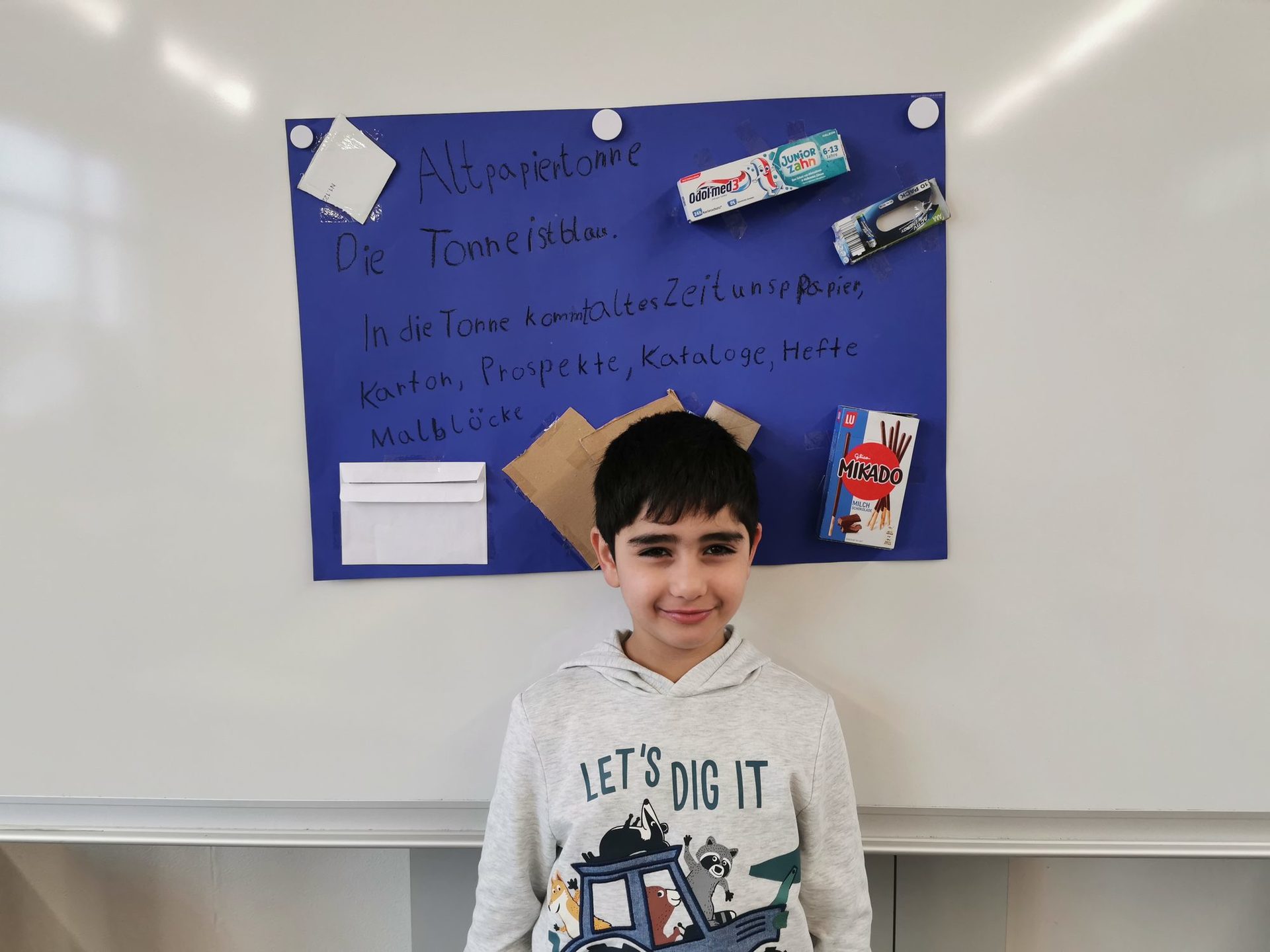 In der zweiten Klasse haben wir uns intensiv mit dem Thema Müll und Mülltrennung beschäftigt. Die Kinder erfuhren, warum Mülltrennung wichtig ist, wie man richtig trennt und welche Materialien in welche Tonne gehören. Dabei wurde auch besprochen, was mit den verschiedenen Müllarten geschieht, nachdem sie die Schule verlassen. So erfuhren die Kinder zum Beispiel, wie aus Altpapier neues Papier wird oder warum es wichtig ist, Plastik und andere Wertstoffe zu recyceln.