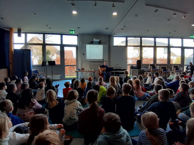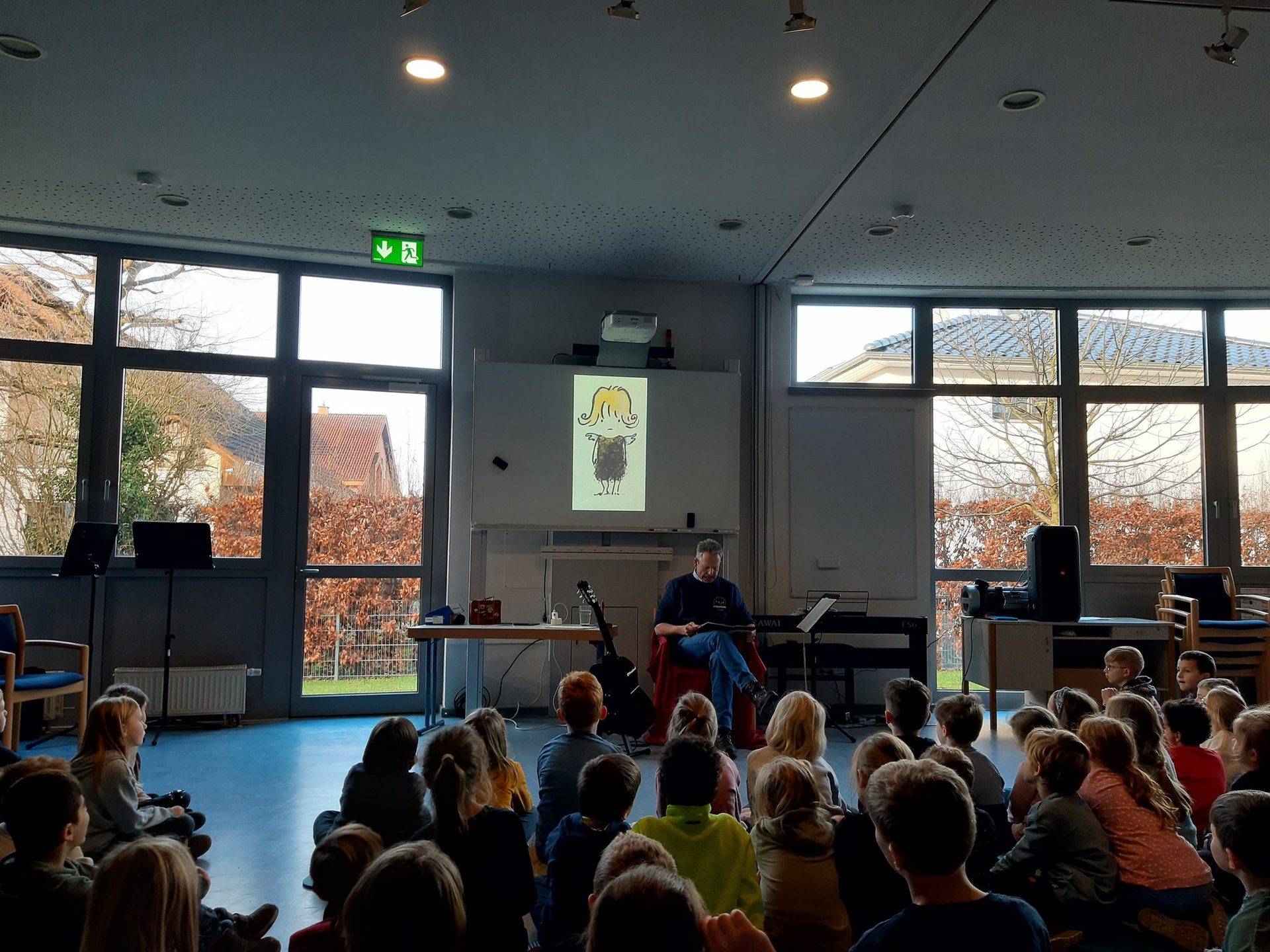 Am letzten Schultag vor Den Ferien liest unser Schulleiter Herr Alberti immer die Geschichte vom „Schweinachtsmann“ vor.