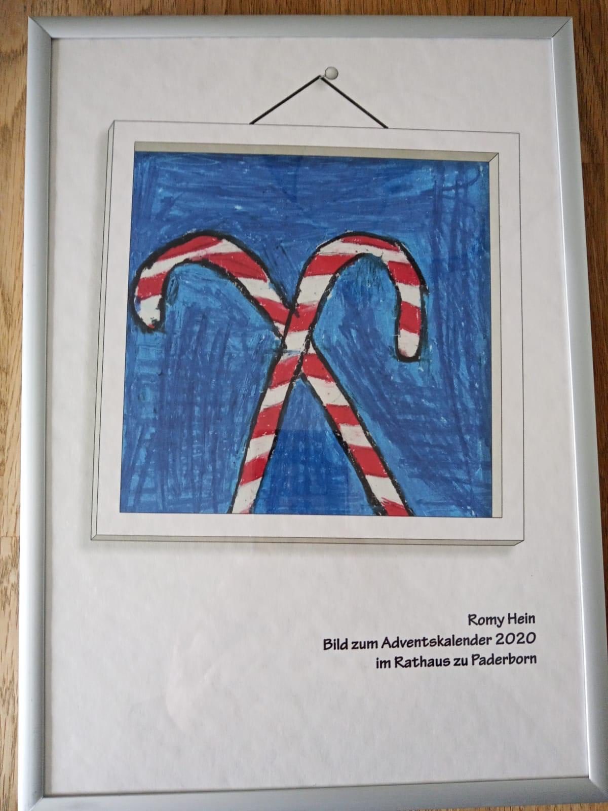 Die Freude war groß, als das Bild von Romy Hein (Klasse 4a) unter den 24 Bildern kam, die täglich in den Rathausfenstern zu sehen waren. Ihre gemalten Zuckerstangen haben der Jury rund um den Bürgermeister Michael Dreier aber so gut gefallen, dass Romy nun auch den Einzelpreis gewonnen hat. Leider konnte die Übergabe des Preises in diesem Jahr nicht im Rathaus stattfinden. Doch Romy freut sich auch so über ihr gerahmtes Bild und einen persönlichen Brief von Herrn Dreier, in dem er ihre Arbeit würdigte.