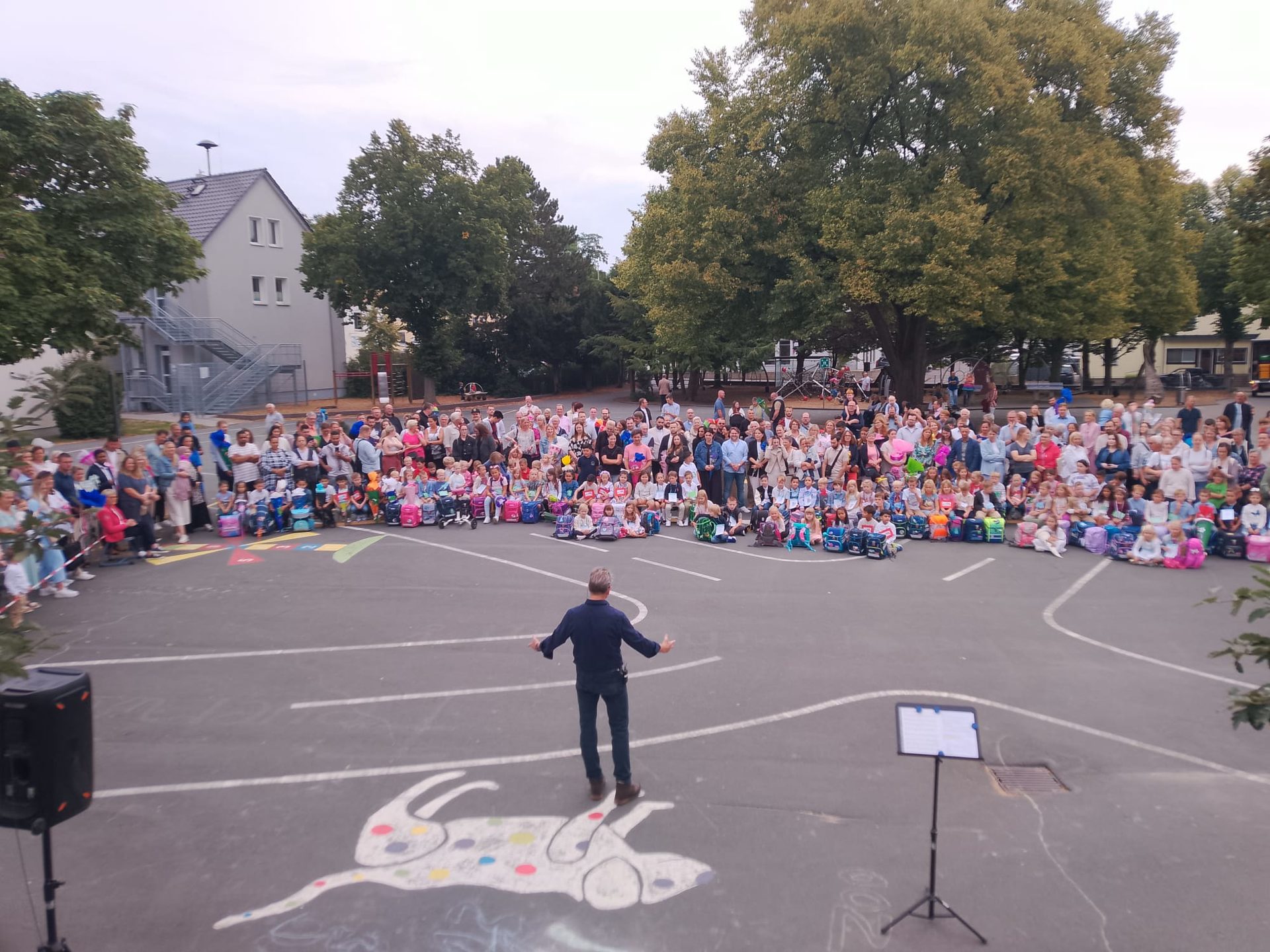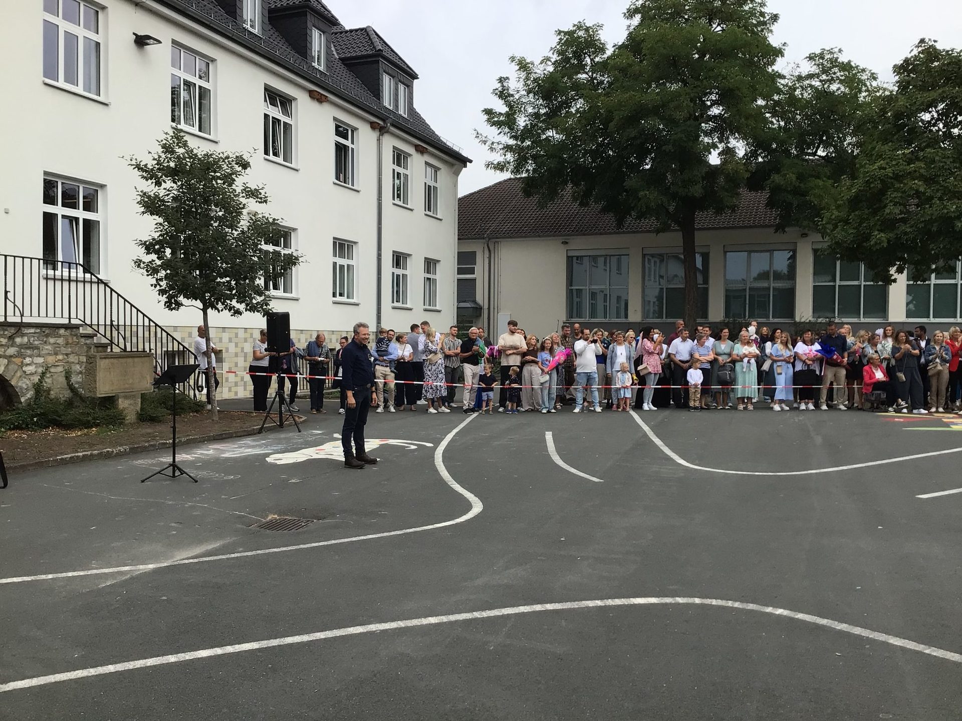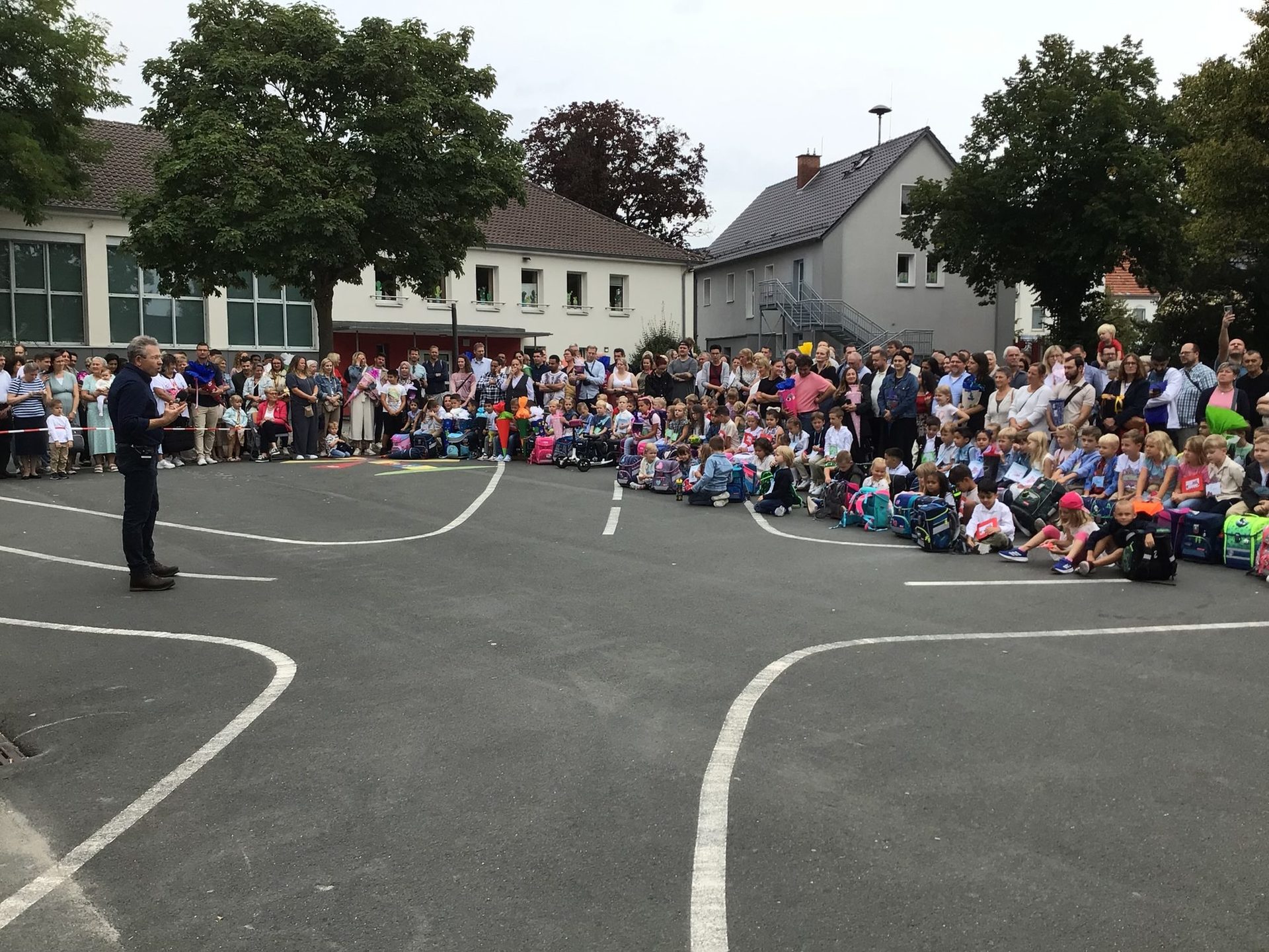 Anschließend versammelten sich alle auf dem Schulhof und wurden dort von unserem Schulleiter begrüßt.