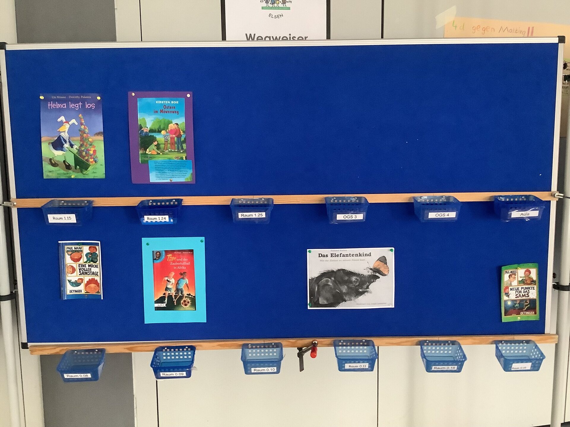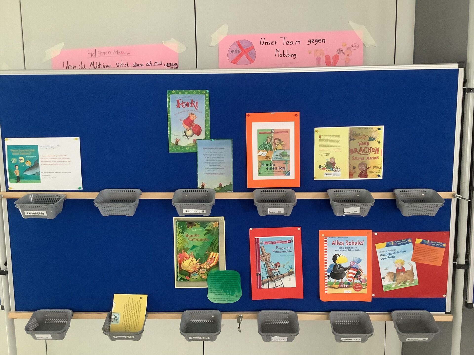Dazu suchen sie sich einen Tag vorher ein Buch aus und nehmen sich eine Karte mit der Raumnummer. So wissen sie in welcher Klasse das Buch vorgelesen wird.