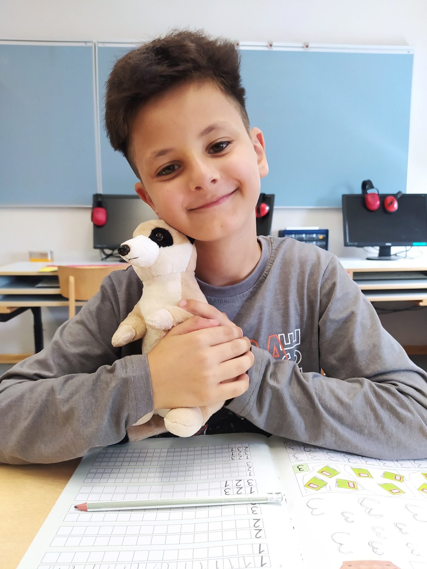 Hallo, wir sind die Klasse 2b. Mit unserem Klassentier Eddi, dem Erdmännchen und unserer Klassenlehrerin Frau Dannewitz hatten wir schon schöne erste Schulwochen.
