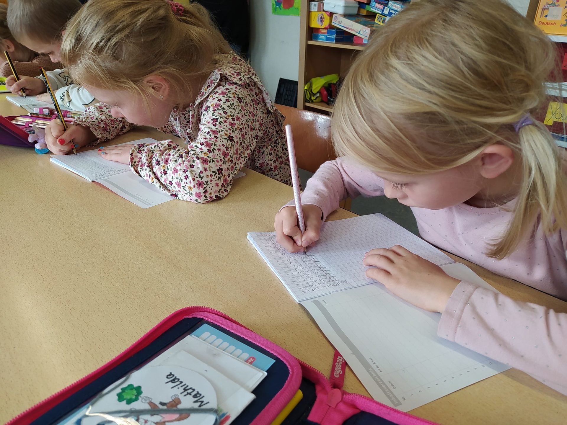 Wir haben schon eine ganze Menge gelernt. Zur Abwechslung singen wir zwischendurch immer gerne ein paar Lieder. Hier üben wir die Zahlen richtig zu schreiben.