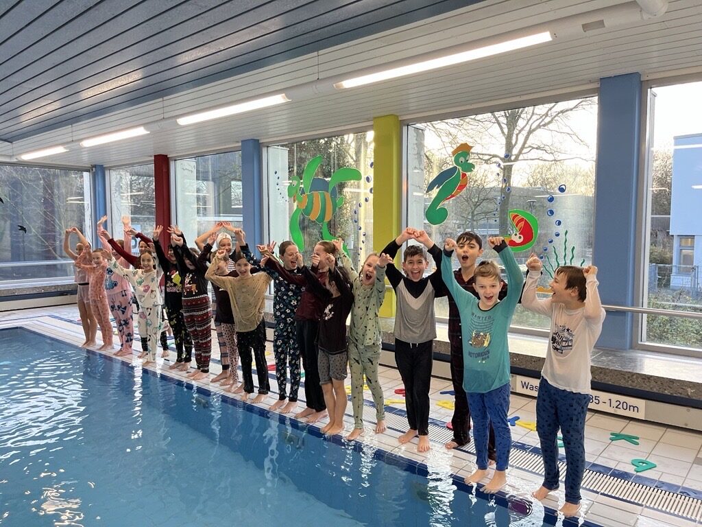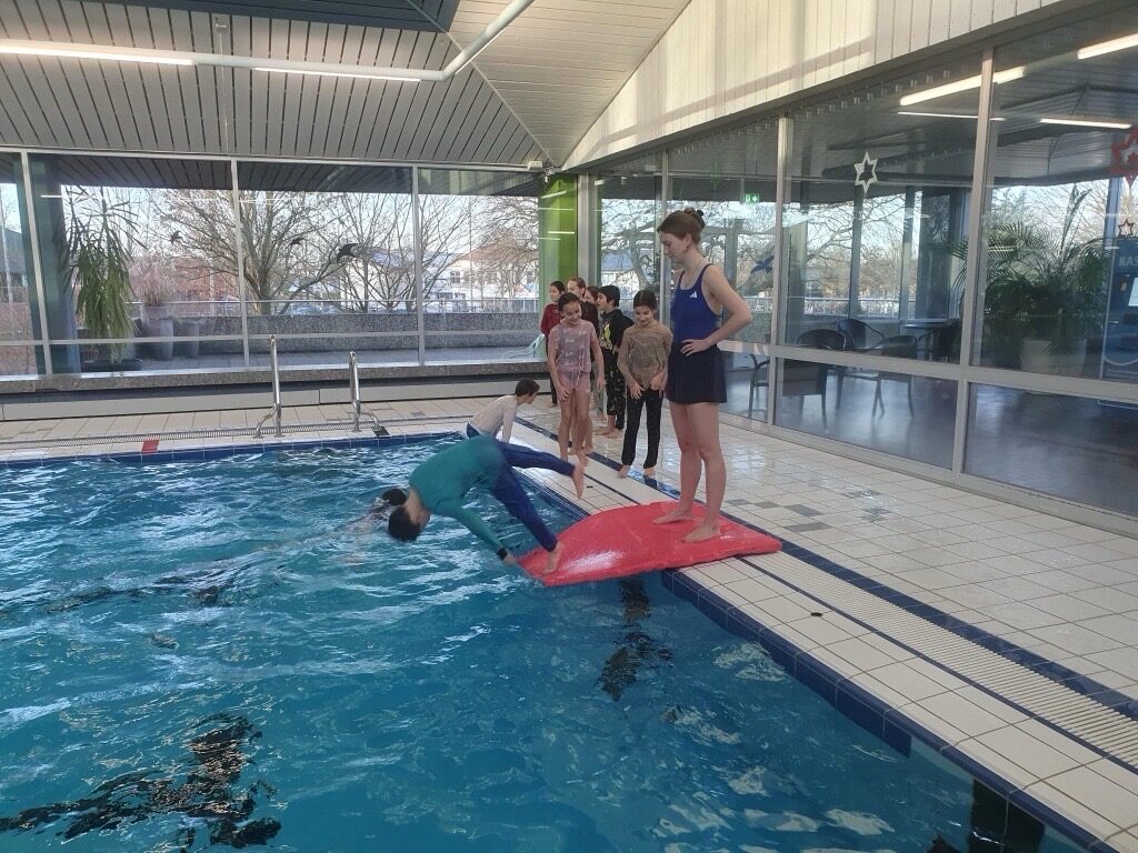 Das Highlight vor den Weihnachtsferien war unser „Weihnachtsschwimmen“. Mit Schlafanzügen bekleidet sind wir zur Plätzchenstaffel angetreten und haben noch andere kleine Wettspiele gemacht.