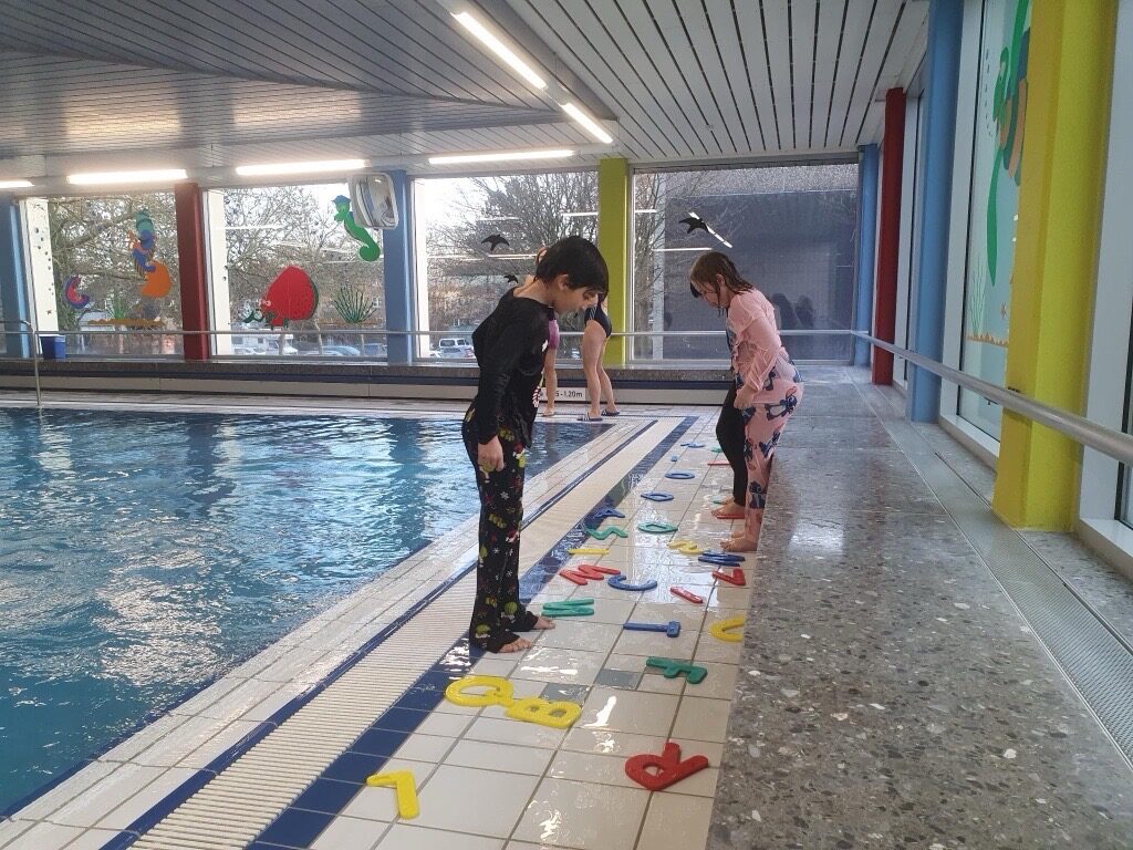 Zwei neue Fächer sind in diesem Schuljahr dazu gekommen: Der Schwimmunterricht mit Frau Lippegaus, Frau Altenhof und der Schwimmassistentin Anne im Alisobad und der Englischunterricht, der uns allen viel Freude bereitet.
