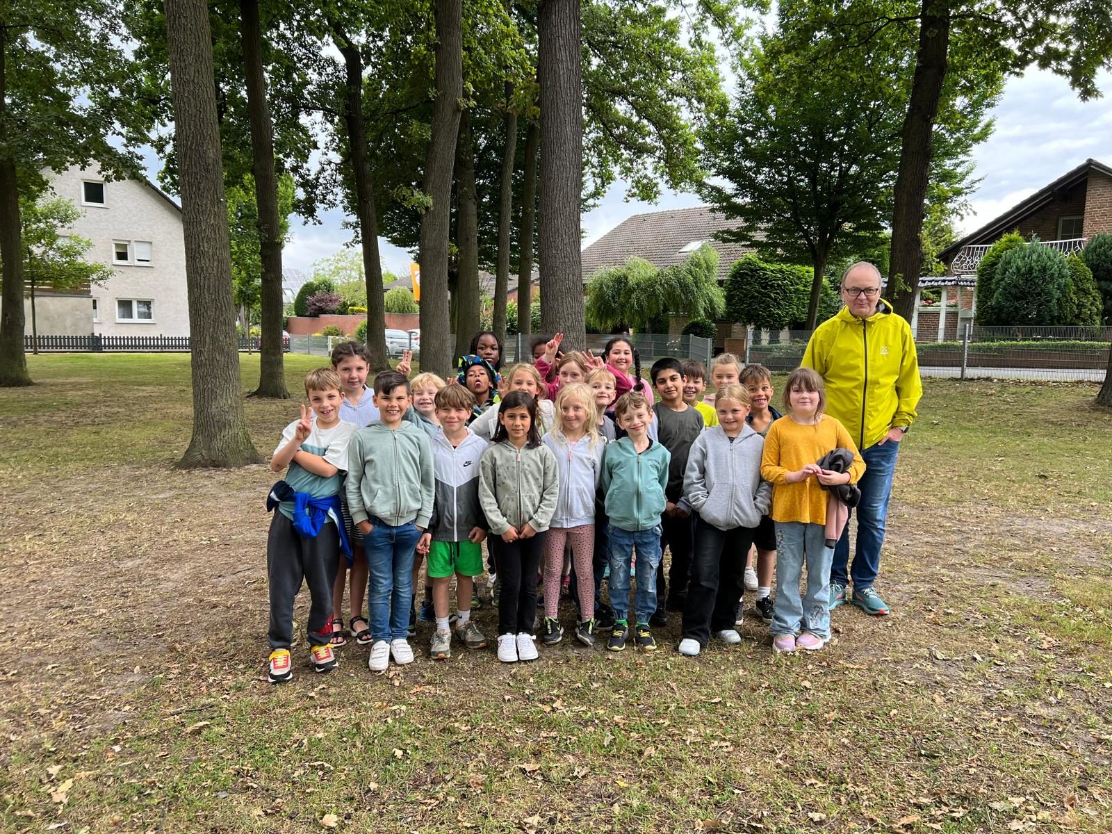 Hier seht ihr uns auf dem Spielplatz mit unserem Lehrer Herrn Henke.