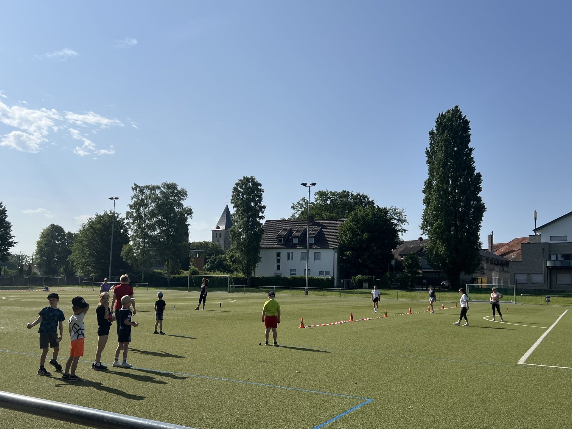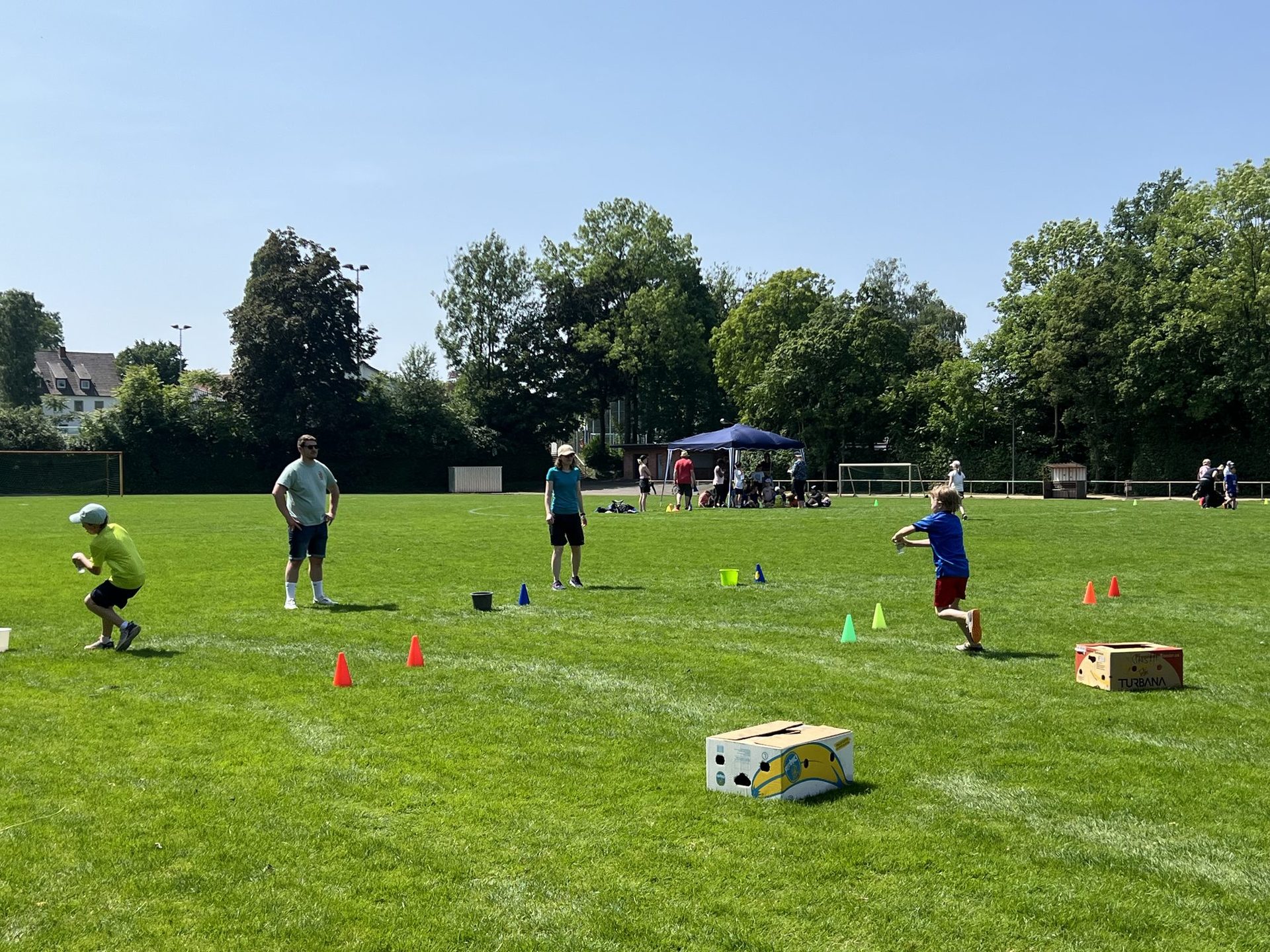 Dafür planten wir auch mehr Zeit ein, so dass die Kinder bis 12:30 Uhr Zeit hatten die Disziplinen für das Deutsche Sportabzeichen zu absolvieren. Außerdem blieb noch genug Zeit für einige Spiel- und Spaßstationen wie die Hüpfburg, Sackhüpfen oder die bei dem heißen Wetter sehr beliebten Wasserspiele.