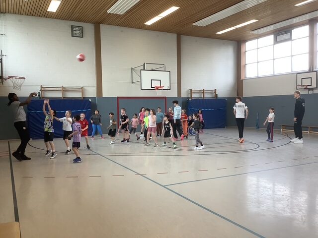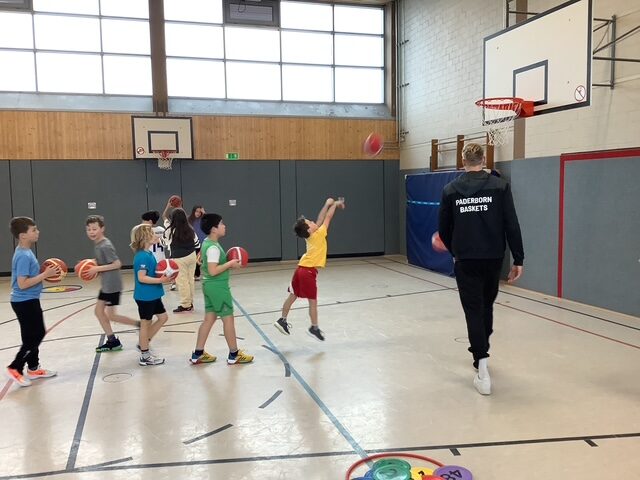 Ein ganz besonderes Erlebnis hatten die Drittklässler unserer Schule: Die Paderborn Baskets waren zu Gast im Sportunterricht! Eine Schulstunde lang durften die Kinder gemeinsam mit den Profis trainieren und in die Welt des Basketballs eintauchen.