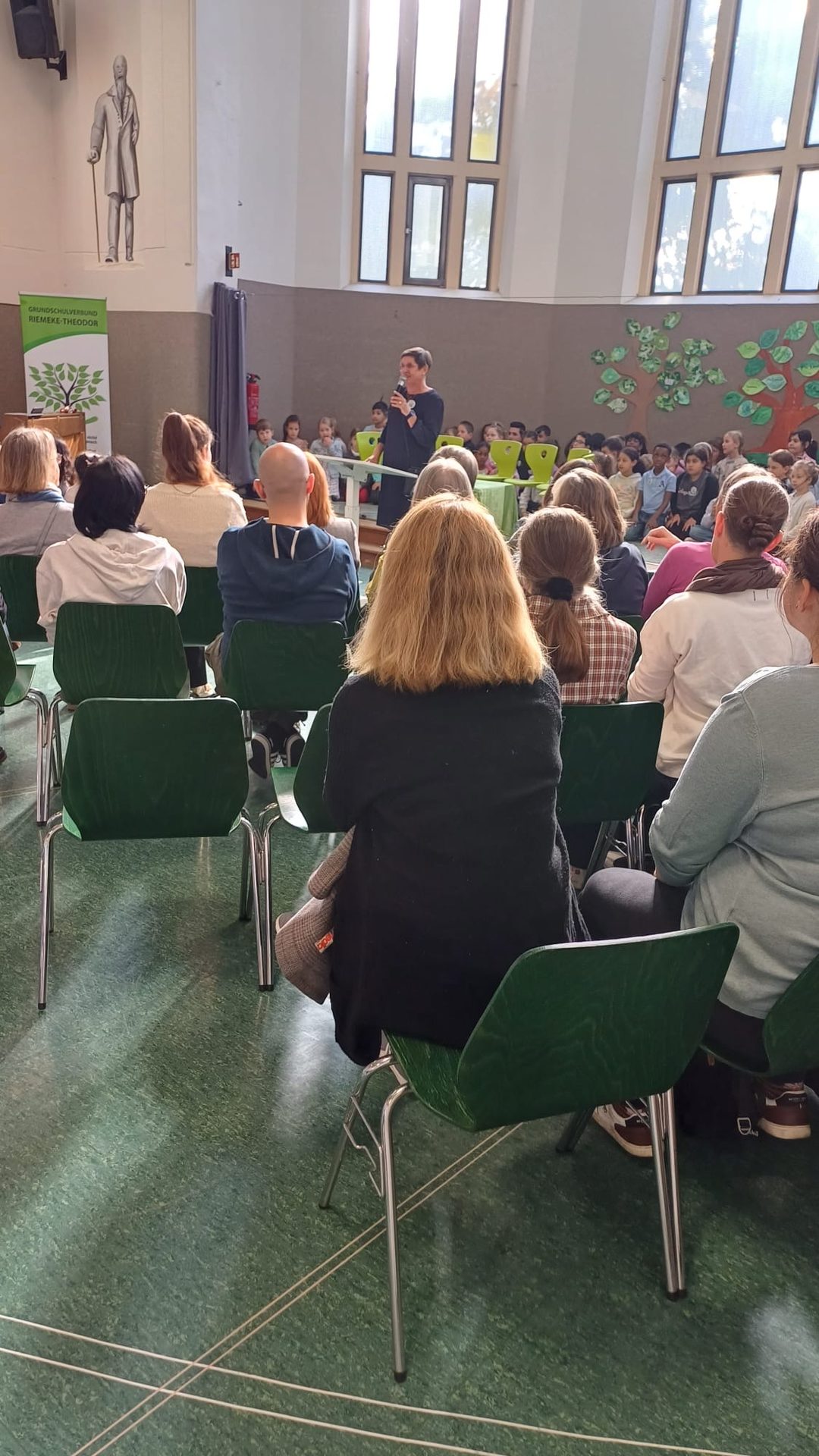 Am Donnerstag, den 2. Oktober 2025 versammelten sich Schüler:innen, Lehrkräfte, pädagogisches Personal, Verwaltungsangestellte, ehrenamtlich Tätige und die durch Eltern vertretene Schulpflegschaft in der Turnhalle unseres Teilstandorts Theodor zu einem gemeinsamen Festakt, welcher das neue Leitbild gemeinsam wachsen in den Mittelpunkt stellte und nicht zuletzt das Erleben eines Gemeinschaftsgefühls initiierte: Gemeinsam wachsen – als Verbund zweier Schulstandorte; Riemeke und Theodor. In feierlicher Atmosphäre spiegelten das Schulleitungsteam, die Lehrkräfte, Lernende, deren Erziehungsberechtigte sowie das gesamte pädagogische Team die Stärken der gewachsenen und stetig wachsenden Schulgemeinschaft.