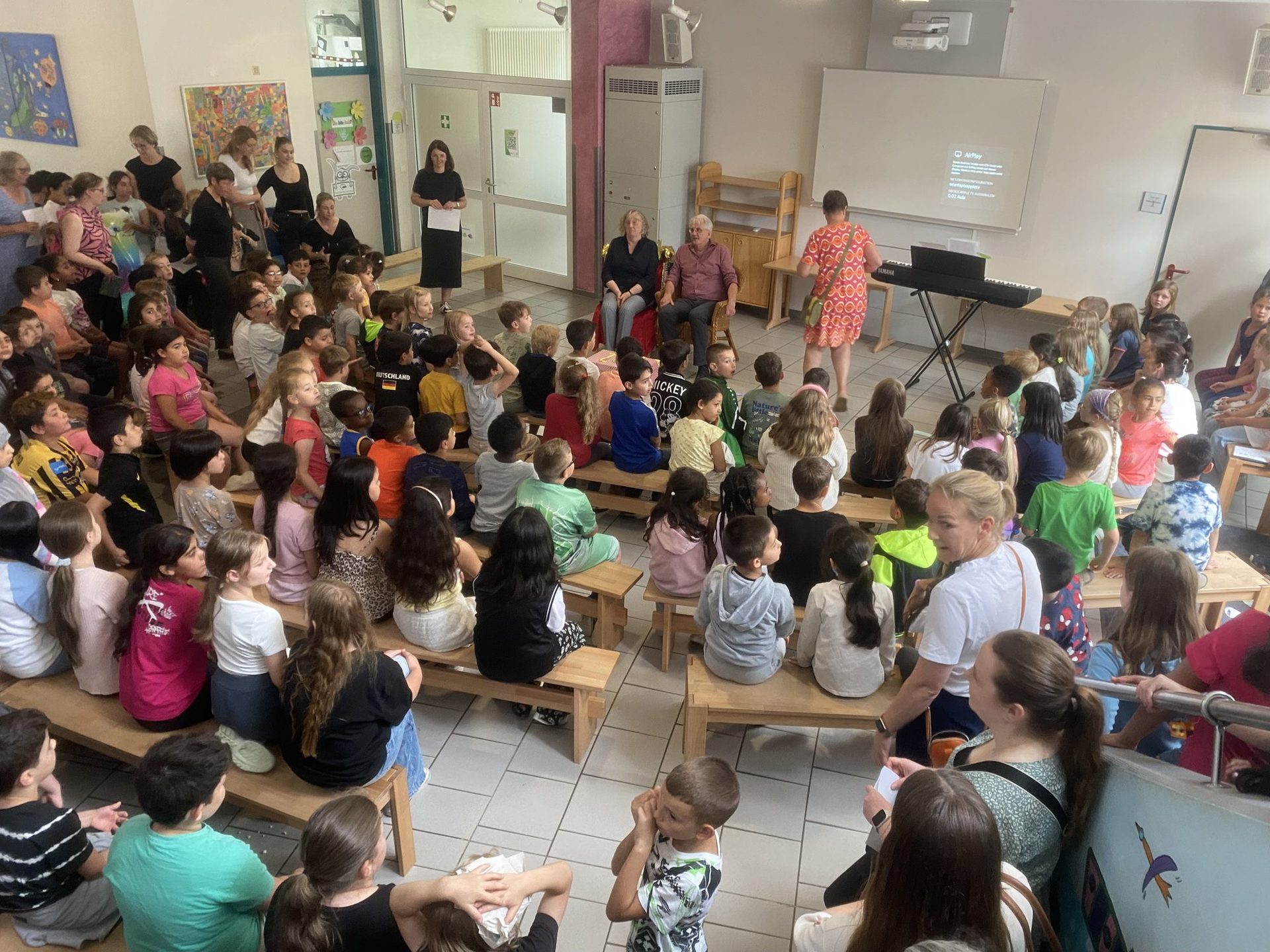 Zum Abschied kamen nicht nur Eltern und Lehrerinnen und Lehrer, sondern auch alle Kinder der Schule sowie viele Freunde – gemeinsam wurde gefeiert, erinnert und losgelassen. Dabei blieb kein Auge ganz trocken – es war ein schöner, emotionaler und sehr wertschätzender Abschied.