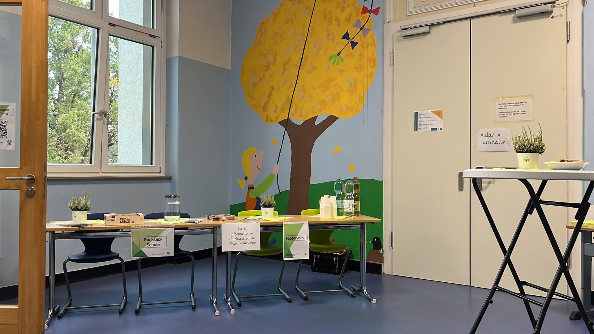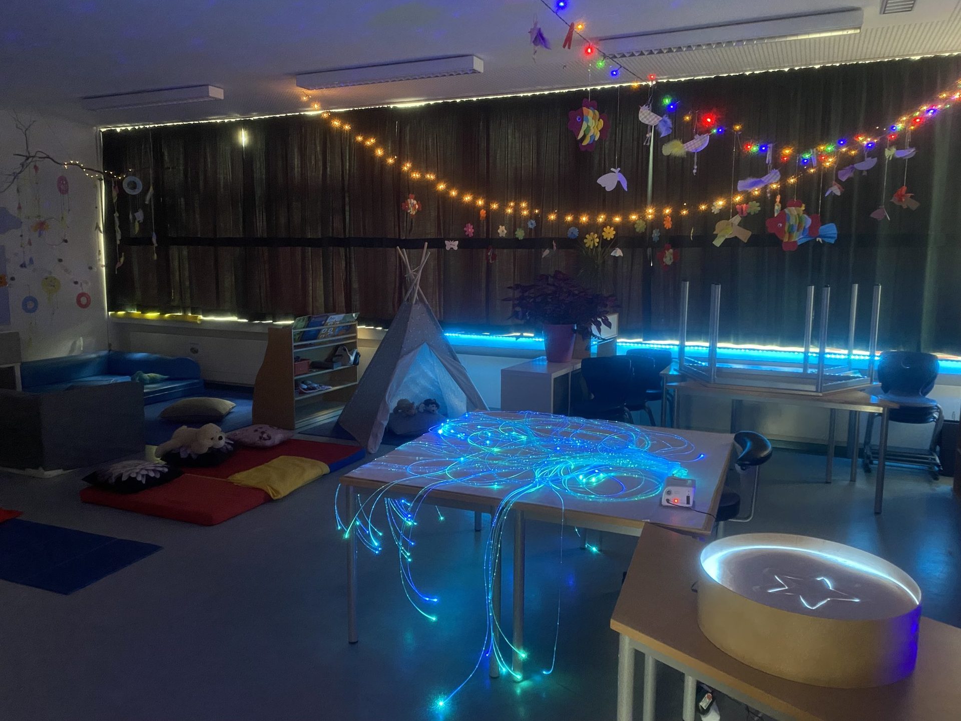Für das leibliche Wohl sorgten die engagierten Eltern am Elternkaffee, die mit Kaffee und Plätzchen für eine gemütliche Atmosphäre beitrugen. Die OGS präsentierte sich mit ihrem Snoezelraum, der bei den Kindern mit stimmungsvollem Licht für Entspannung sorgt . Gleichzeitig standen die Schulsozialarbeit, die Schulleitung und alle Lehrkräfte für Fragen und Gespräche zur Verfügung.