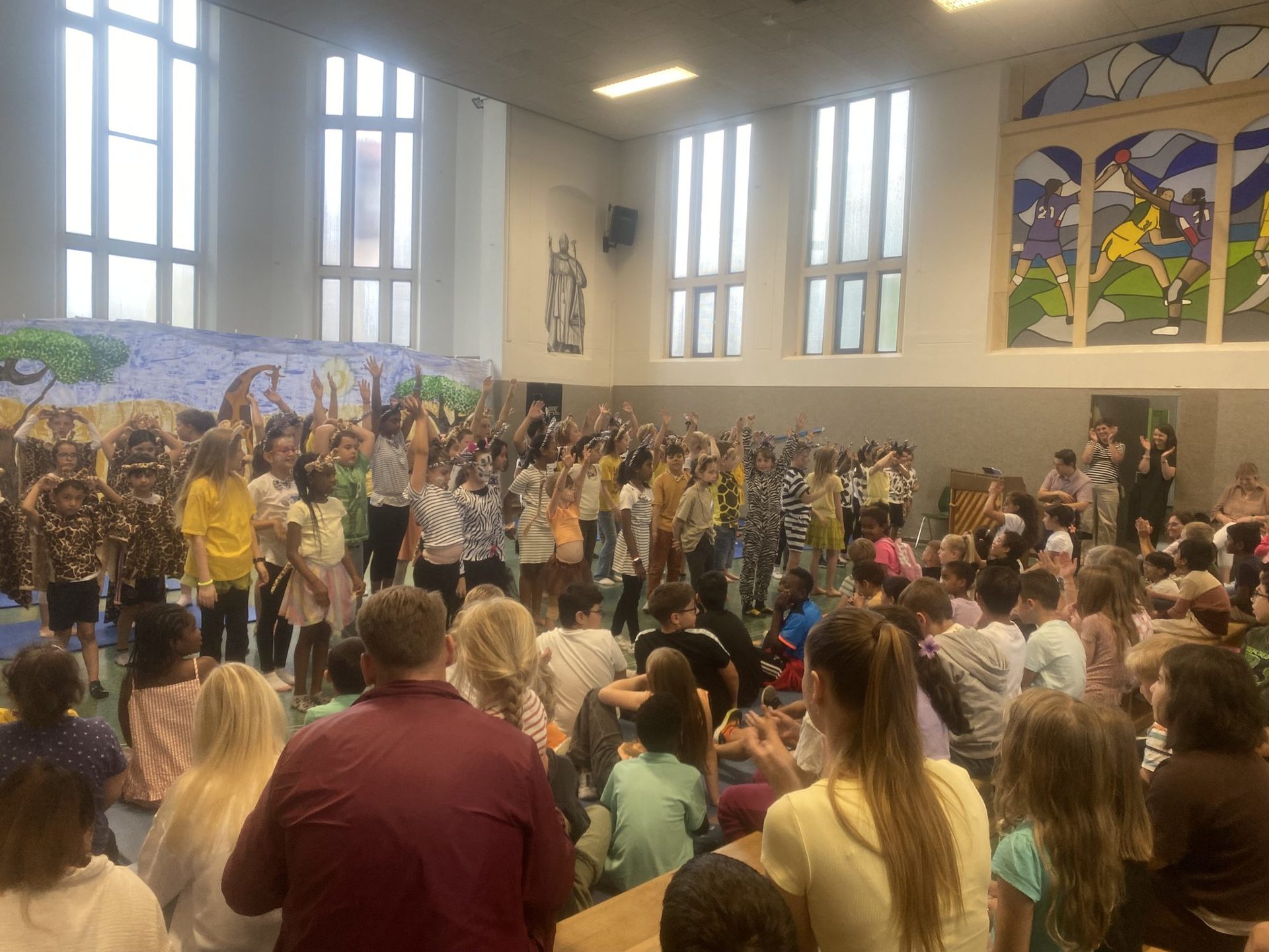 In der letzten Woche vor den Sommerferien wurde es musikalisch und emotional in unserer Schule: Der JeKits-Chor unter der Leitung von Sertaç Istihkâmyapan präsentierte das farbenfrohe Musical „Tuishi Pamoja – Eine Freundschaft in der Savanne“.
