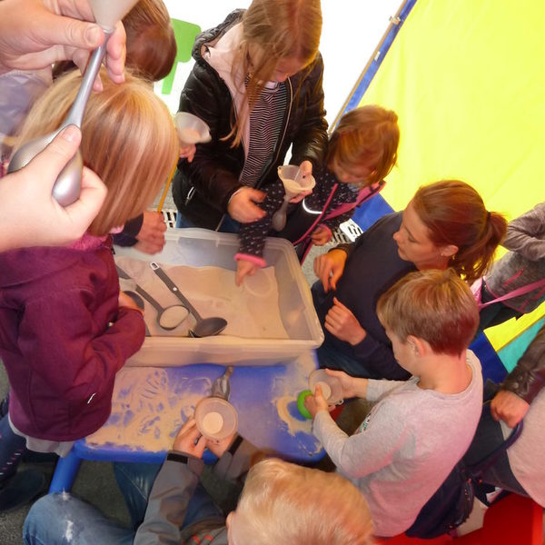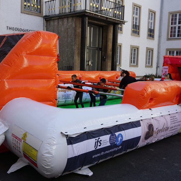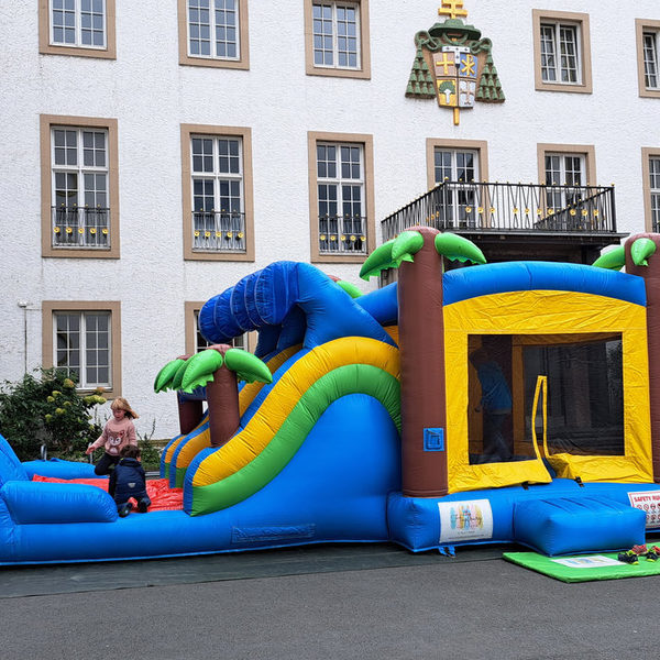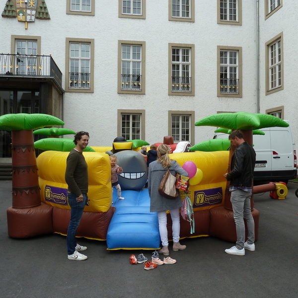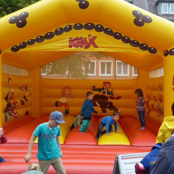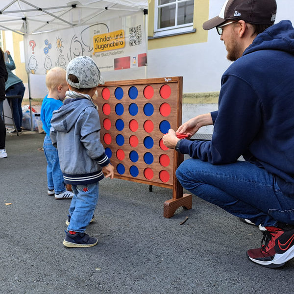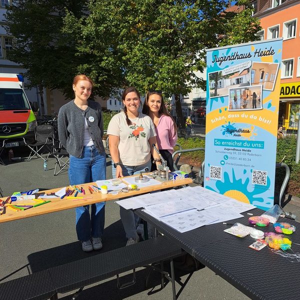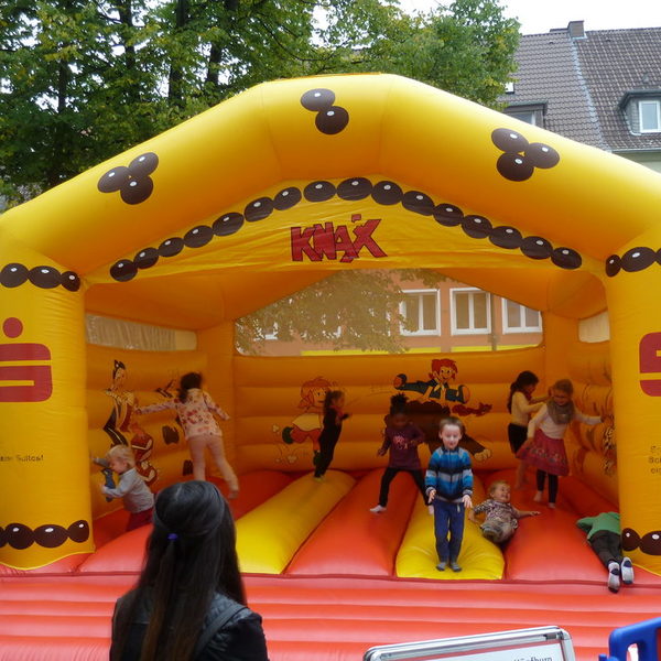 Gleichzeitig startete auch ein Kinderfest auf dem Schulgelände des Theodorianums. Dort machte sich das Motto „Kinder brauchen Freiräume“ alle Ehre. Durch eine riesen Abenteuerhüpfburg in Form eines Piratenschiffs und der Windelpirateninsel für kleine Kinder durften kleine und große Weltentdecker ihrer Phantasie und Kreativität freien Lauf lassen. Zudem bot auch der SC Grün/Weiß Paderborn, Fools Unlimited- Verein für Zirkuskunst, BUND, der FUD, die städtischen und katholischen Kitas und das städtische Spielmobil Spiel- und Spaß an. Im Fokus standen das Balancieren auf einer Slackline, Akrobatik, Kinderschminken und das Erbauen von Nistkästen für Vögel.