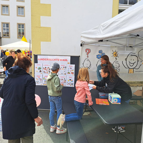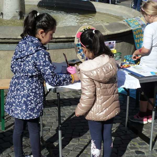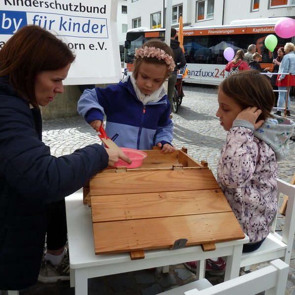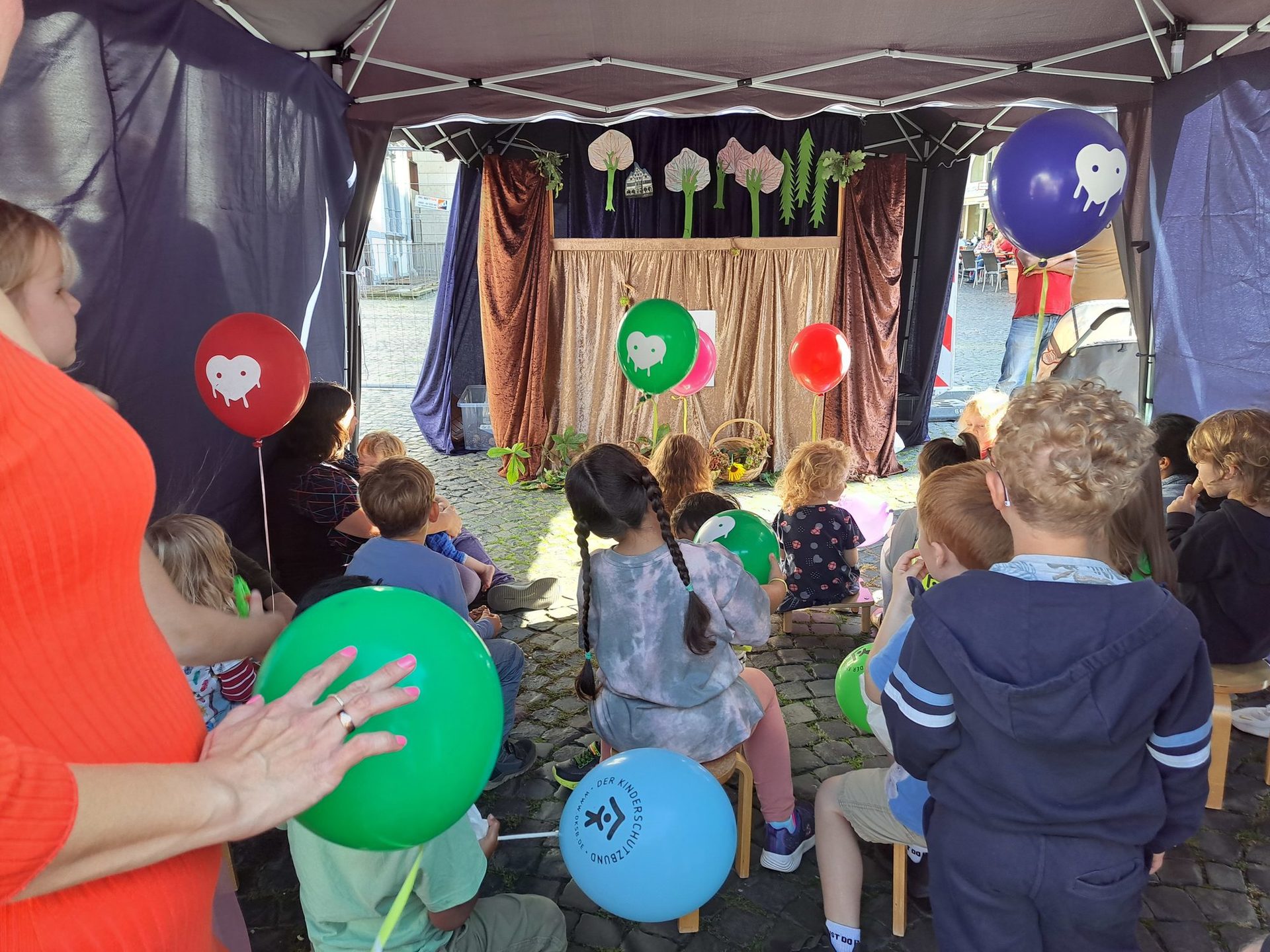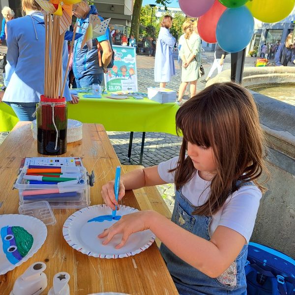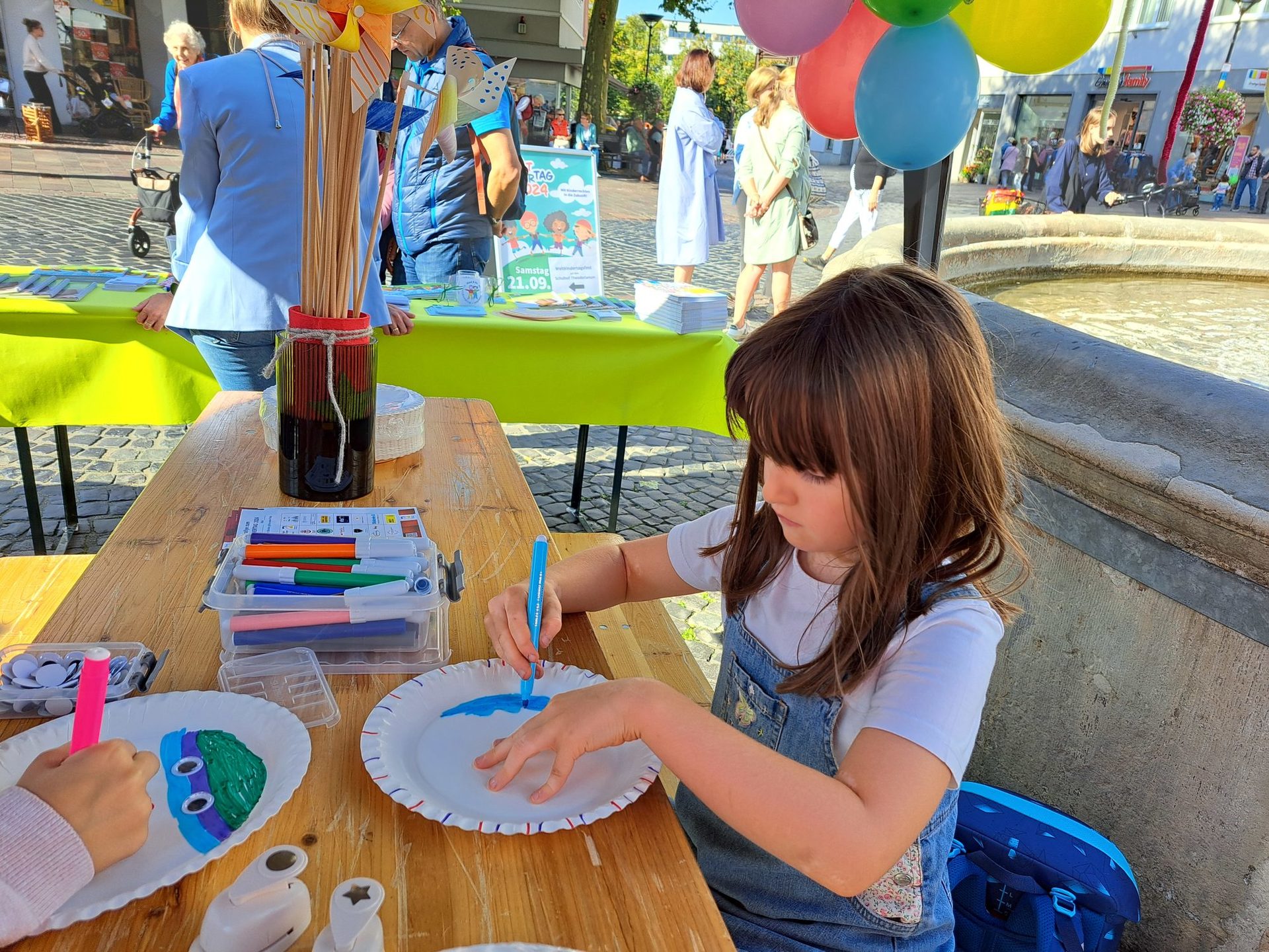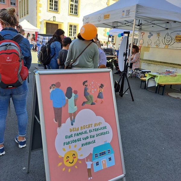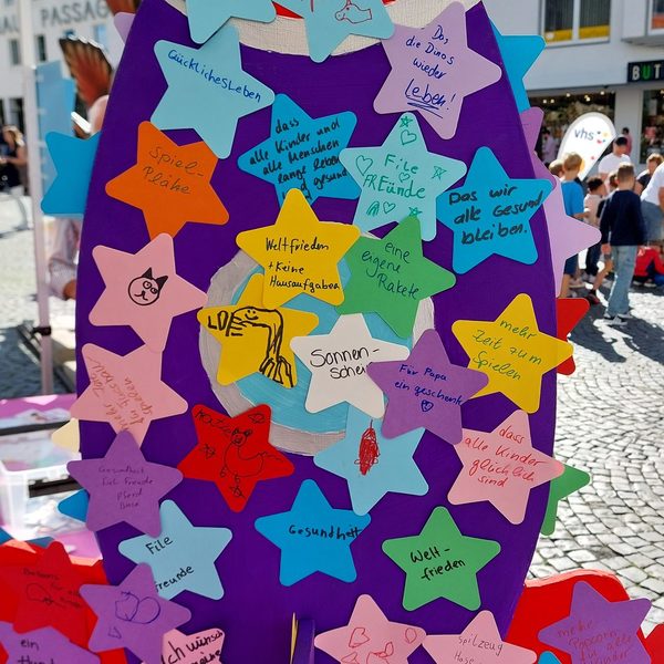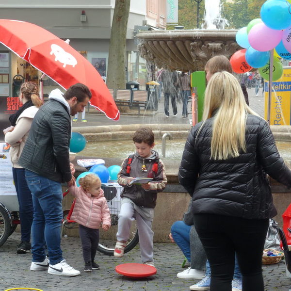 Auch auf dem Rathausplatz sorgten Mal-/ und Bastelangebote für große Begeisterung bei den Kindern. Beispielsweise konnten sie Postkarten mit individuellen Wünschen gestaltet werden, welche an einem Ballon befestigt in die Luft starteten. Zudem konnten sich alle Kinder sportlich, kreativ, handwerklich und spielerisch ausprobieren und sich über ihre Rechte informieren.