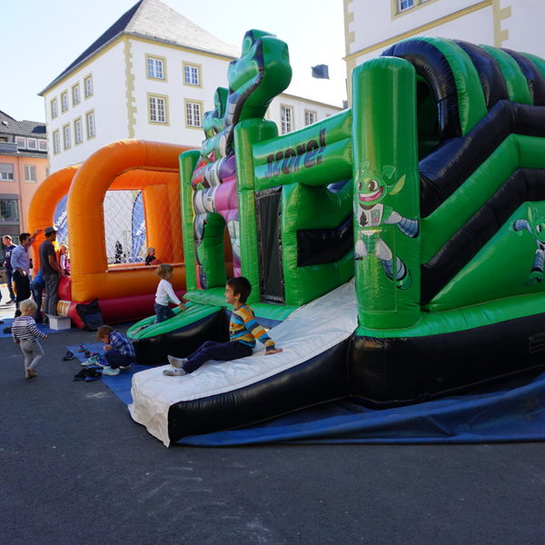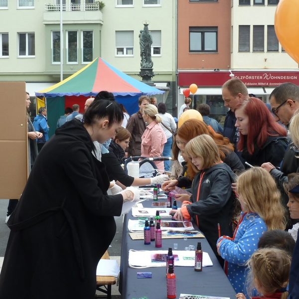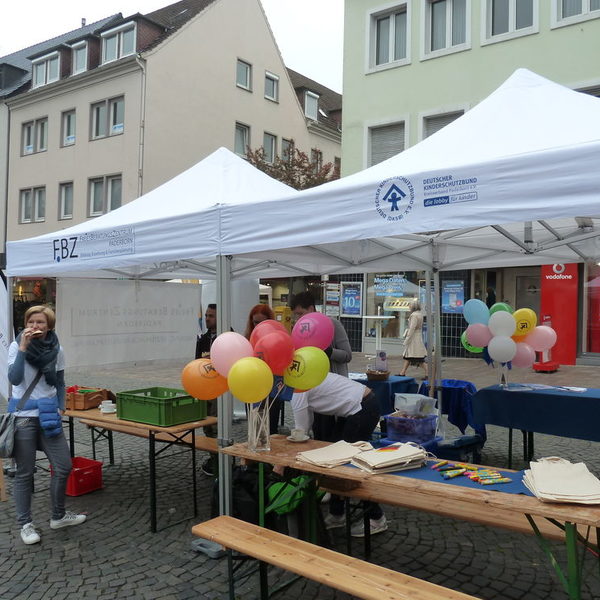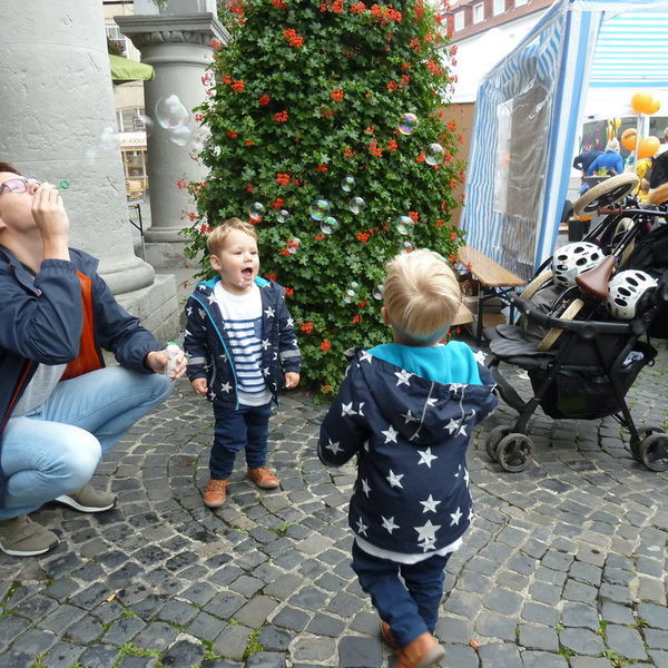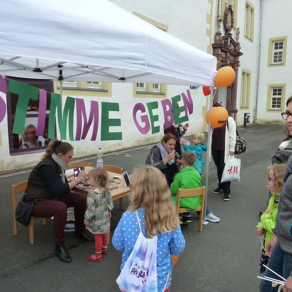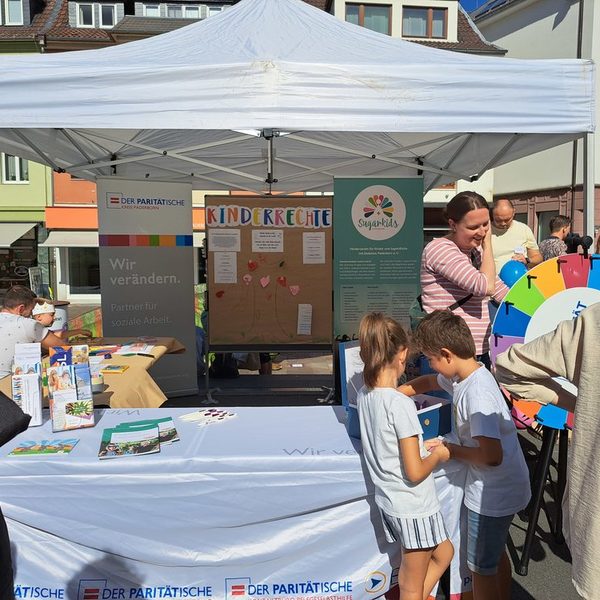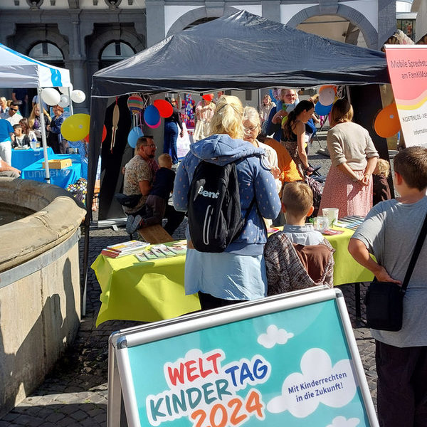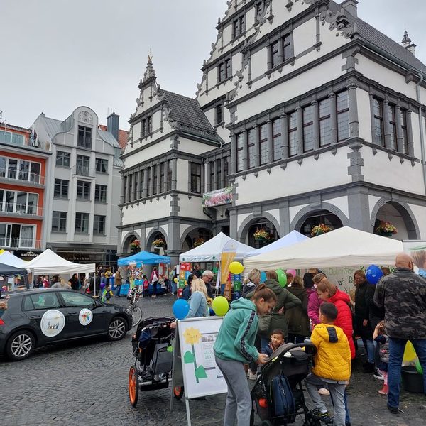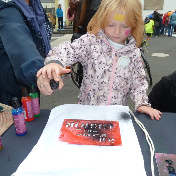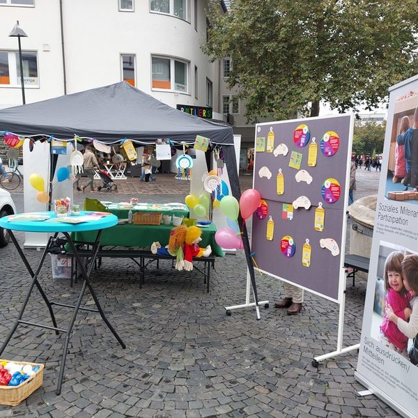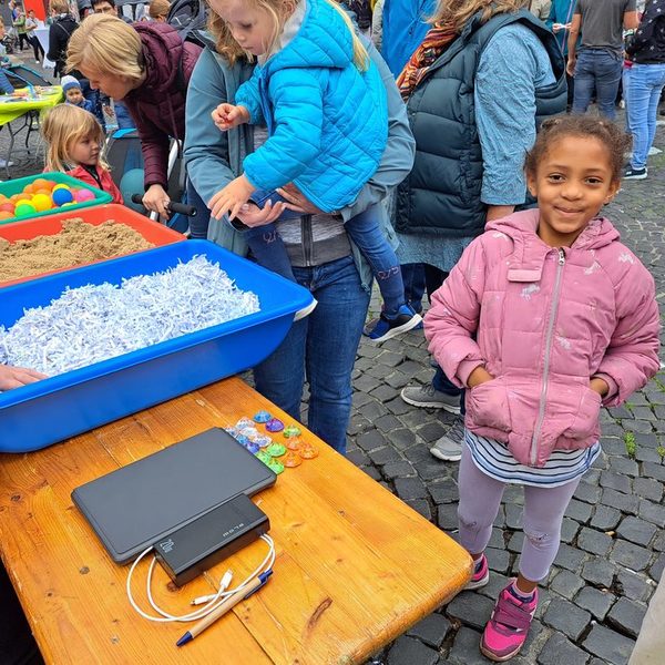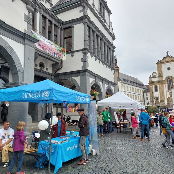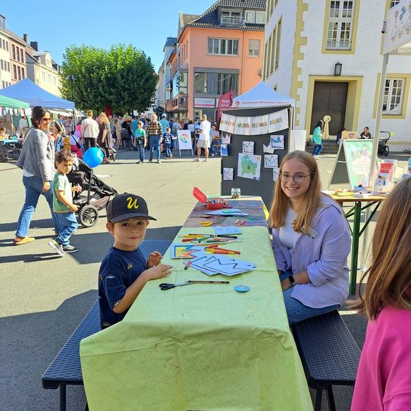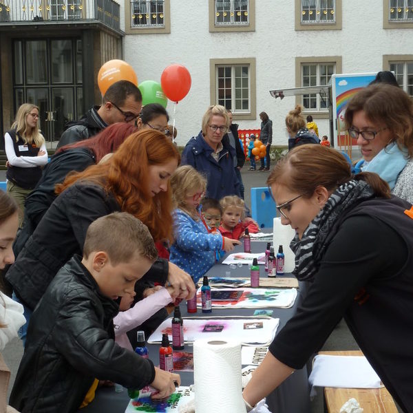 Auch auf dem Rathausplatz sorgten Mal-/ und Bastelangebote für große Begeisterung bei den Kindern. Beispielsweise konnten sie Postkarten mit individuellen Wünschen gestaltet werden, welche an einem Ballon befestigt in die Luft starteten. Zudem konnten sich alle Kinder sportlich, kreativ, handwerklich und spielerisch ausprobieren und sich über ihre Rechte informieren.