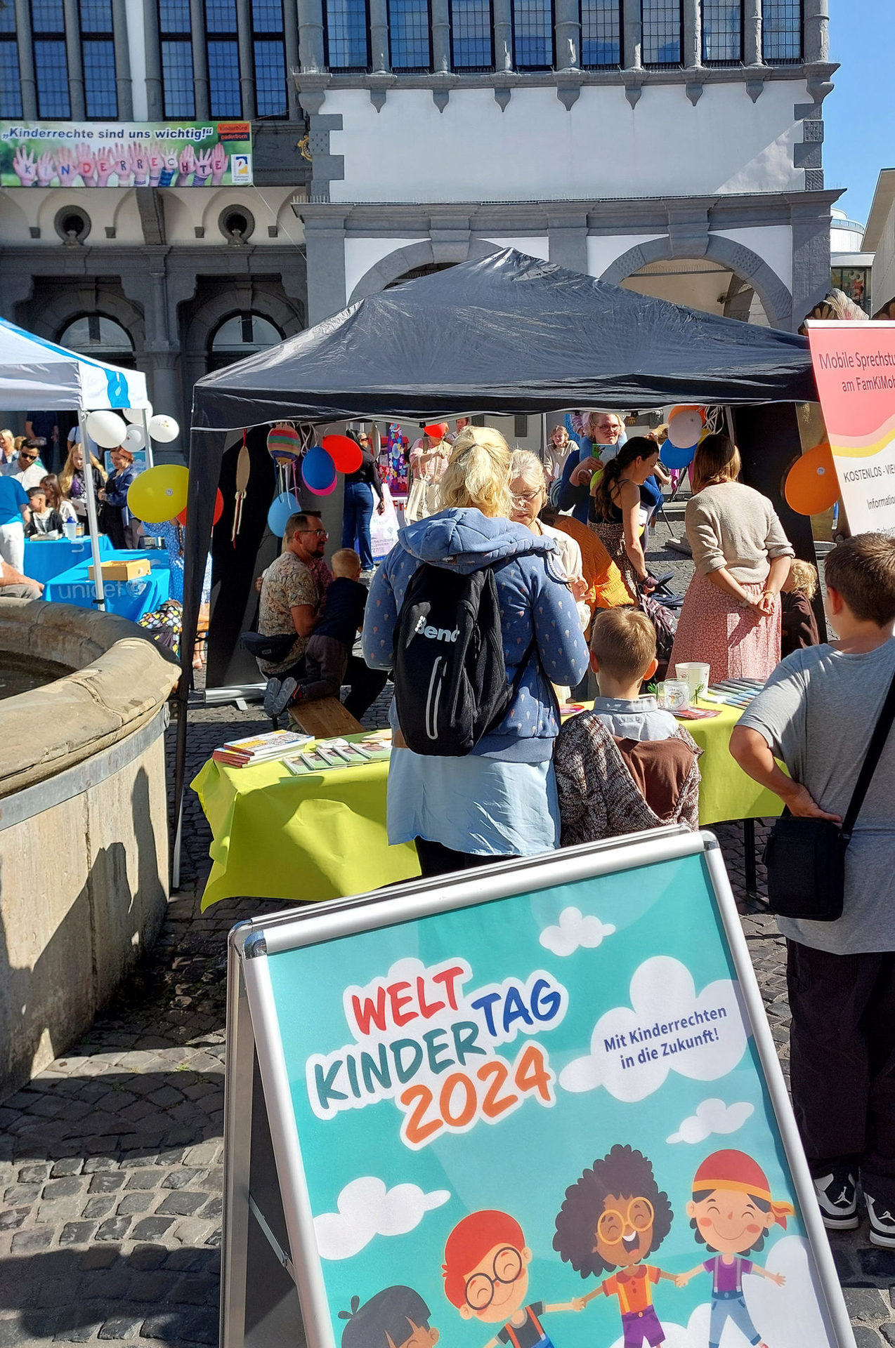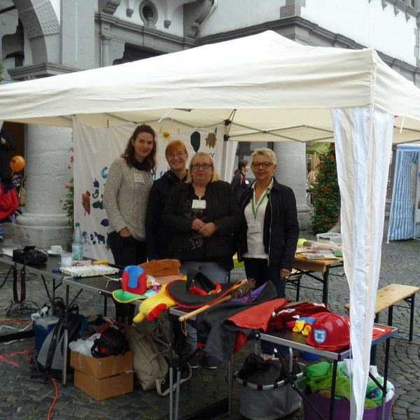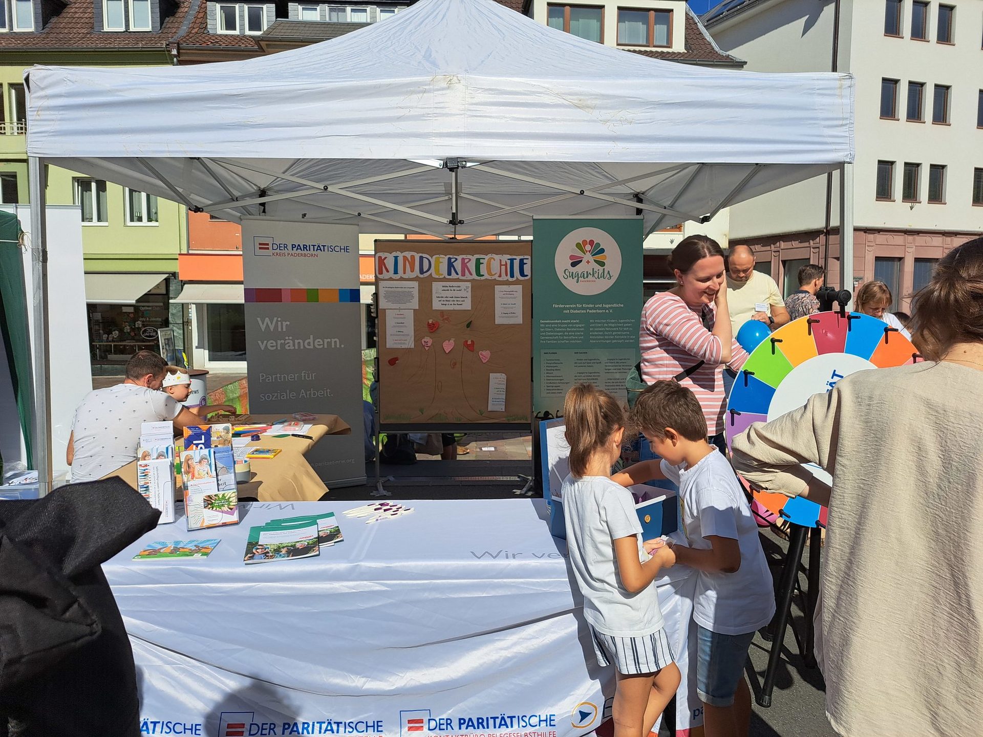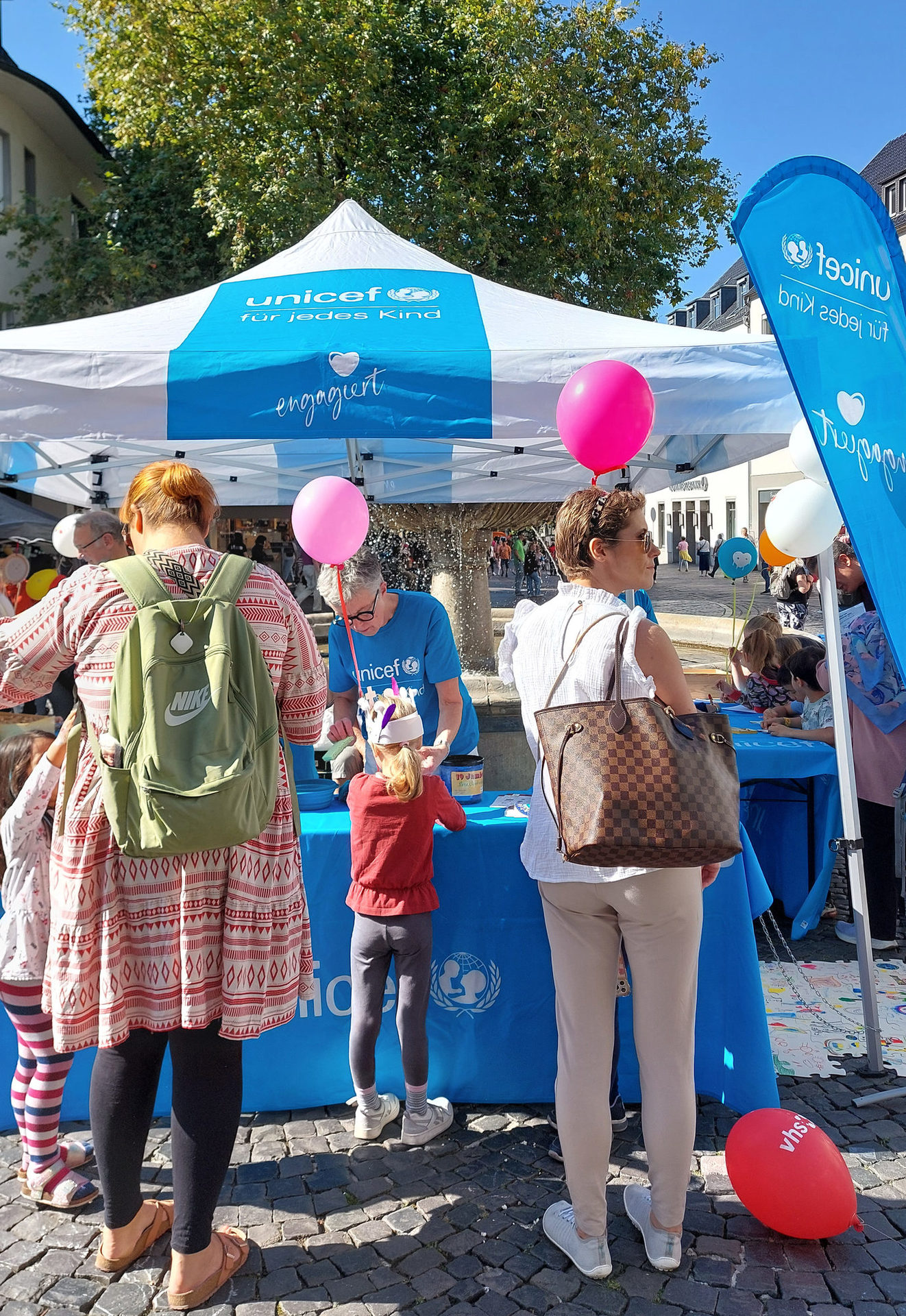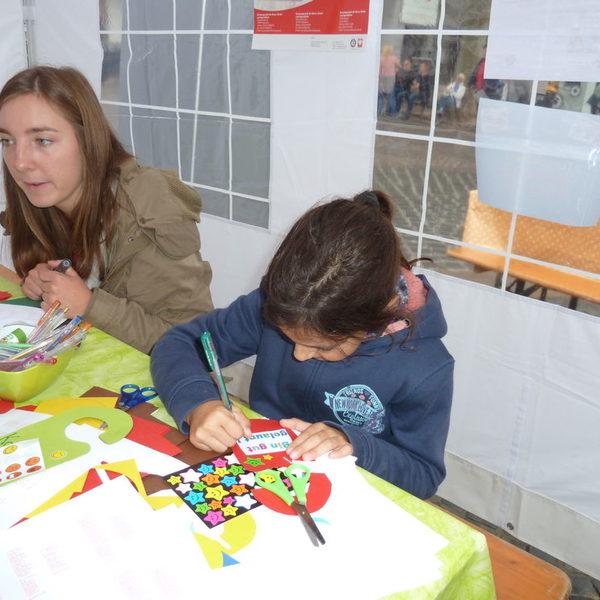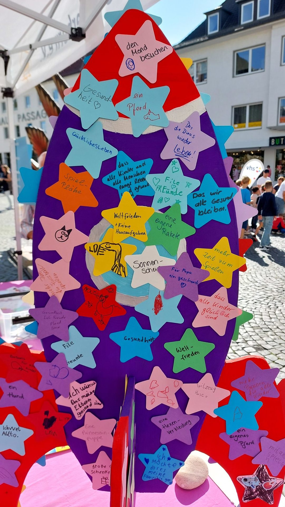 Auch auf dem Rathausplatz sorgten Mal-/ und Bastelangebote für große Begeisterung bei den Kindern. Beispielsweise konnten sie Postkarten mit individuellen Wünschen gestaltet werden, welche an einem Ballon befestigt in die Luft starteten. Zudem konnten sich alle Kinder sportlich, kreativ, handwerklich und spielerisch ausprobieren und sich über ihre Rechte informieren.