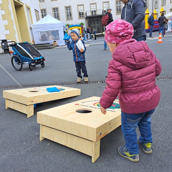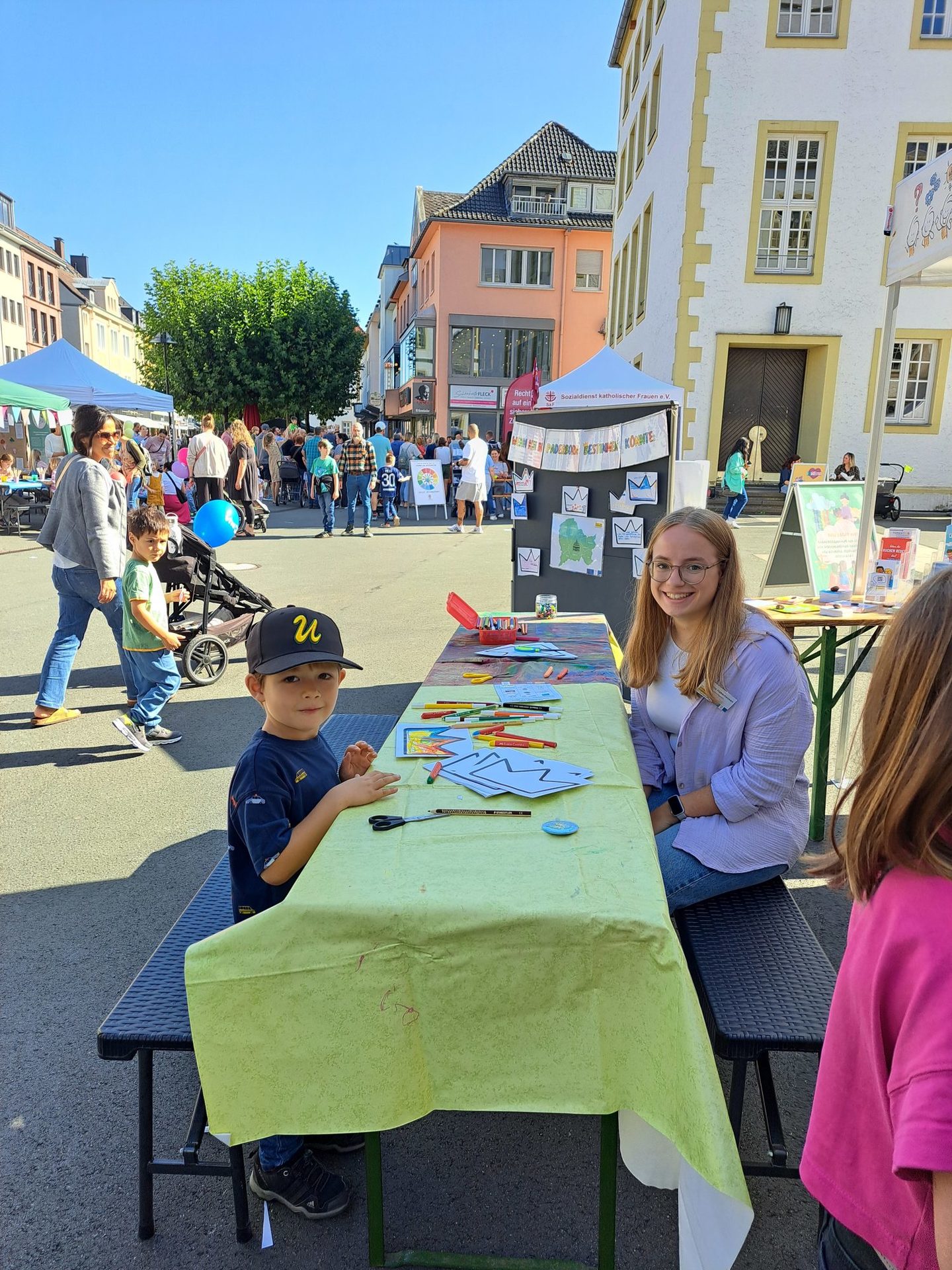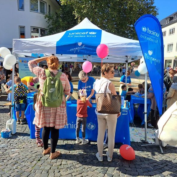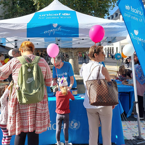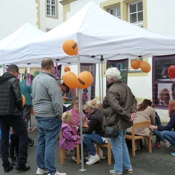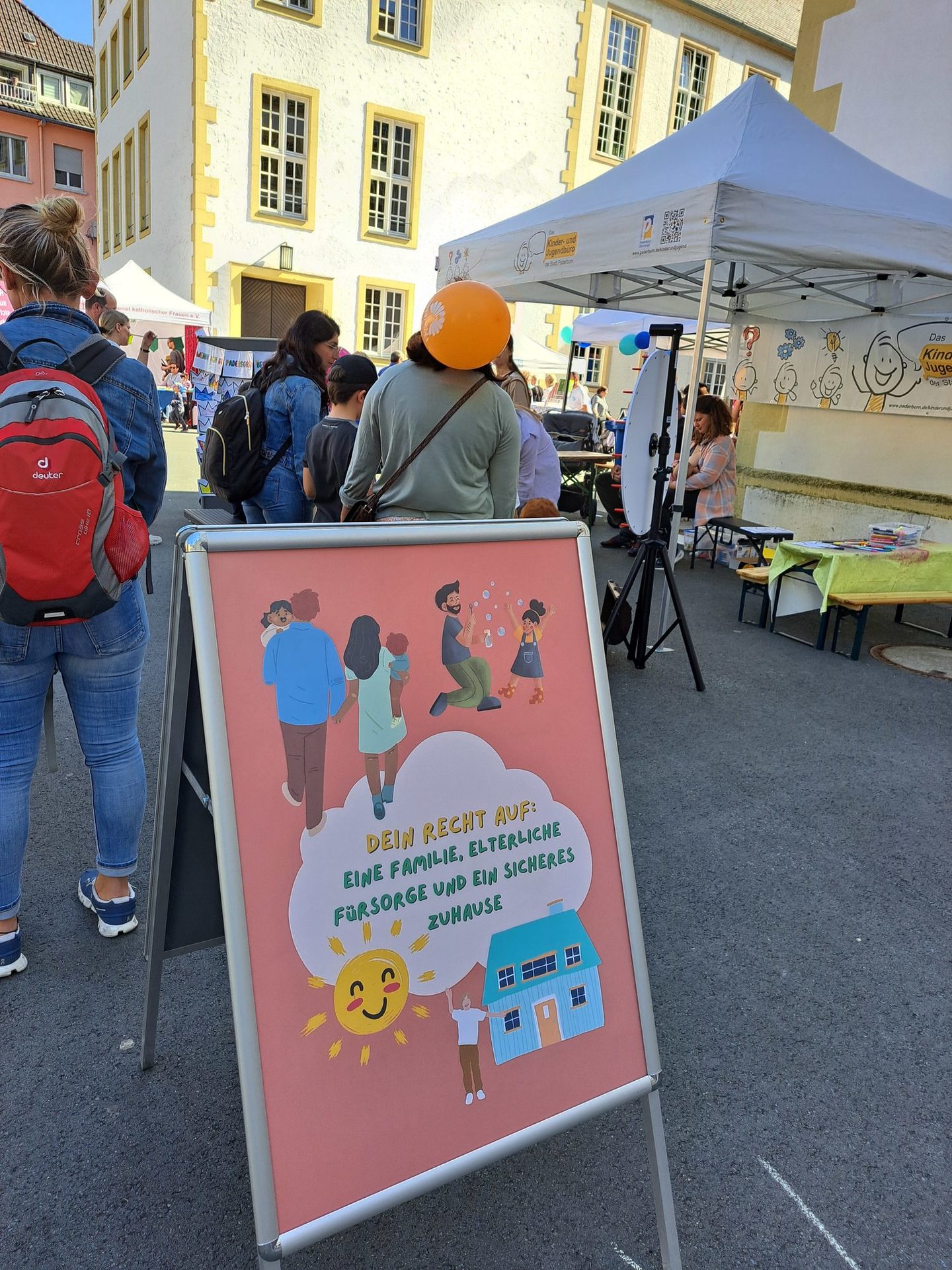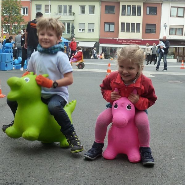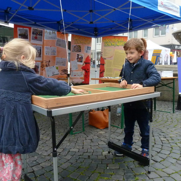 Auch auf dem Rathausplatz sorgten Mal-/ und Bastelangebote für große Begeisterung bei den Kindern. Beispielsweise konnten sie Postkarten mit individuellen Wünschen gestaltet werden, welche an einem Ballon befestigt in die Luft starteten. Zudem konnten sich alle Kinder sportlich, kreativ, handwerklich und spielerisch ausprobieren und sich über ihre Rechte informieren.